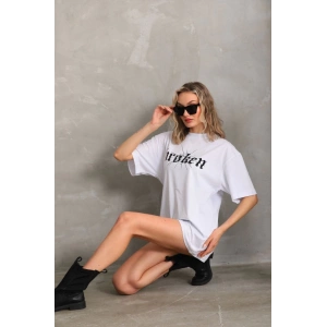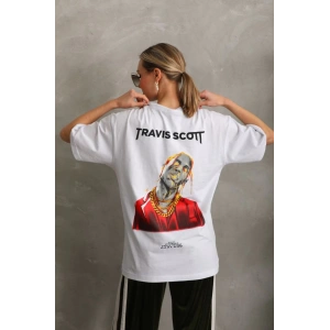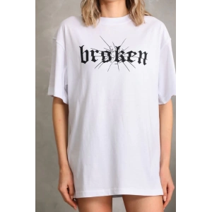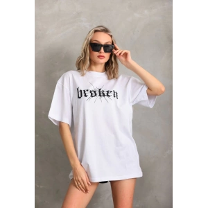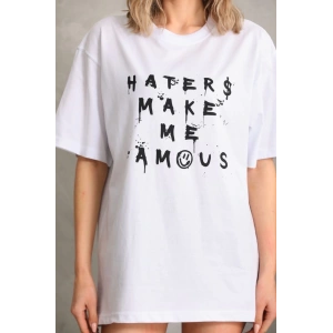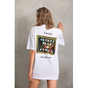 Unisex Baskılı Oversize T-Shirt - Beyaz