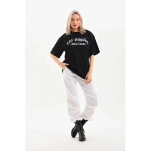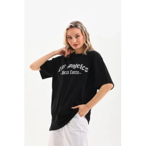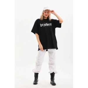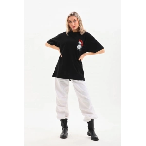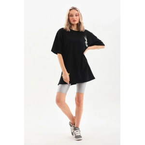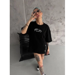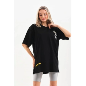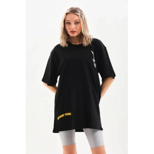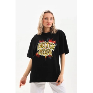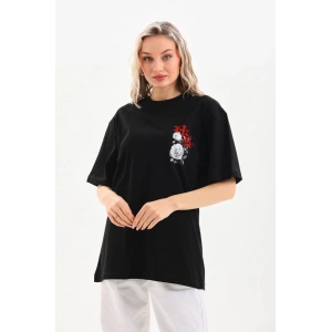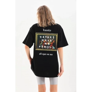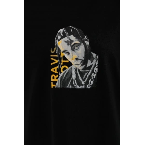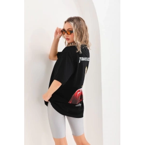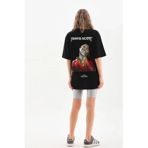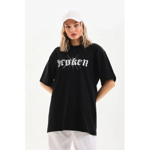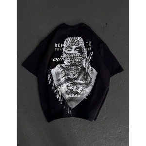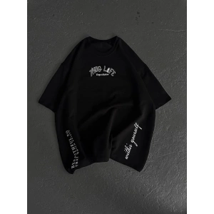 Unisex Baskılı Oversize T-Shirt - Siyah