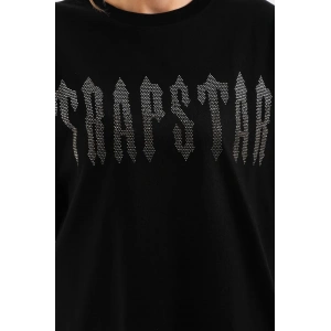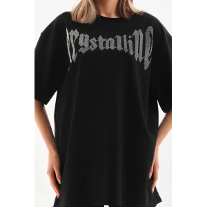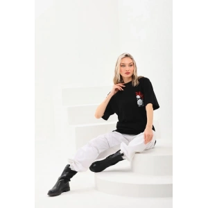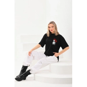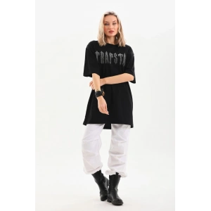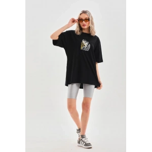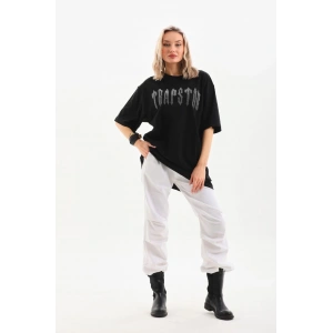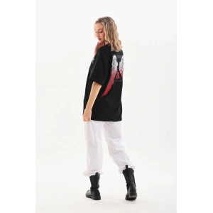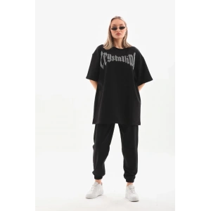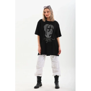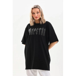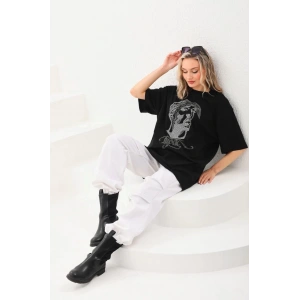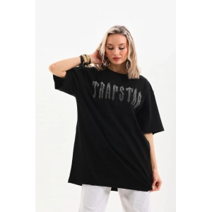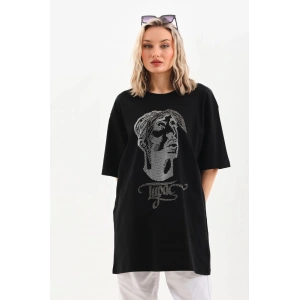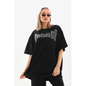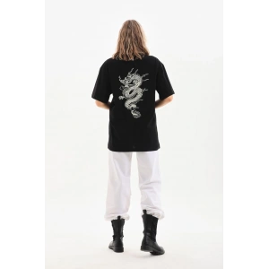 Unisex Taş Desenli Oversize T-Shirt - Siyah