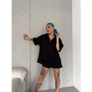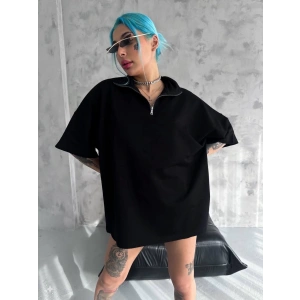 Unisex Yarım Fermuarlı Basic T-Shirt - Siyah
