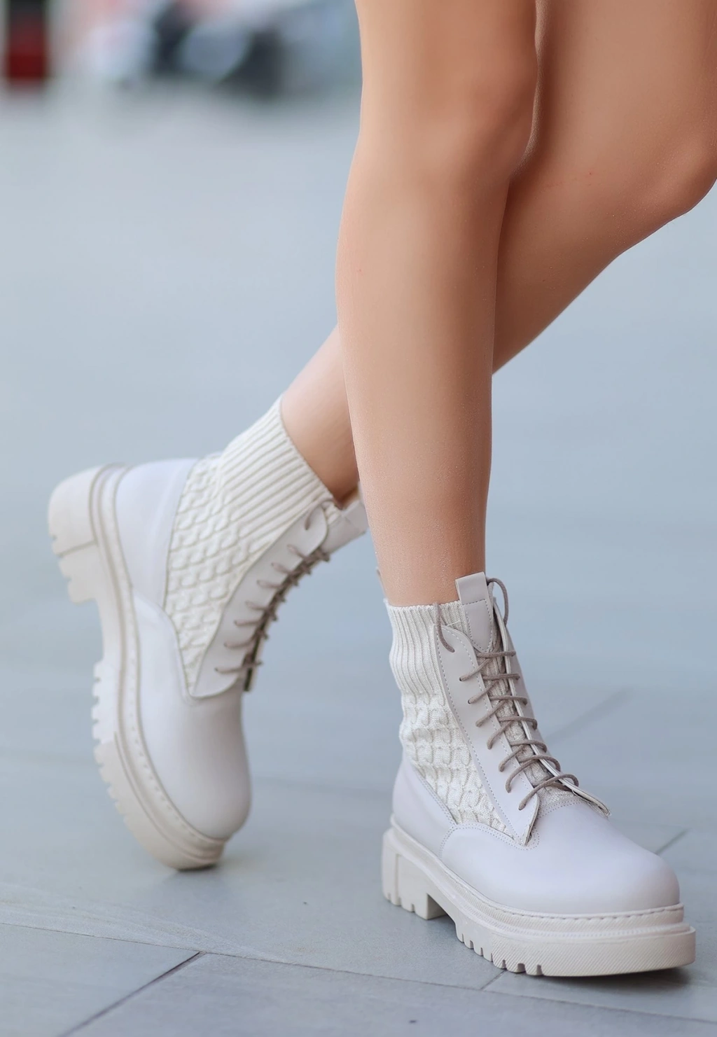 Jones Bej Cilt Bağcıklı Topuklu Bot