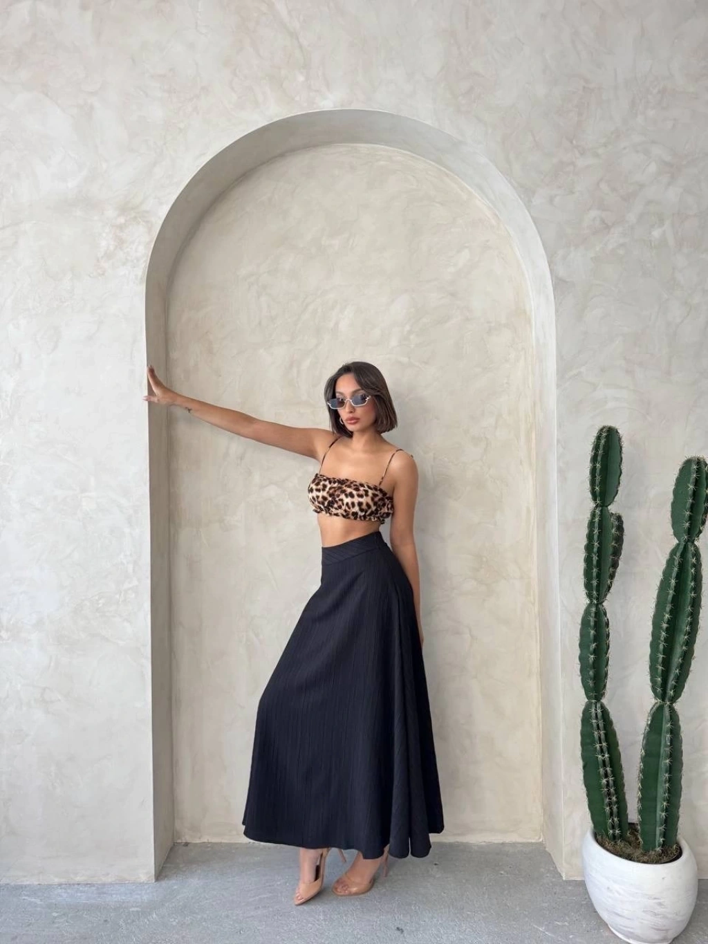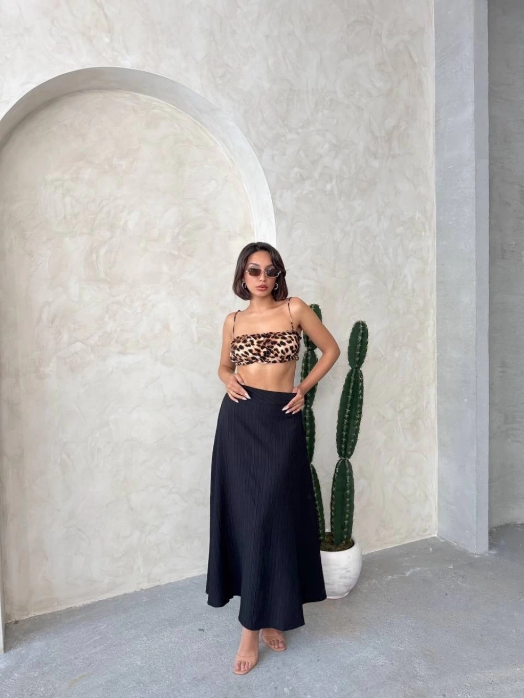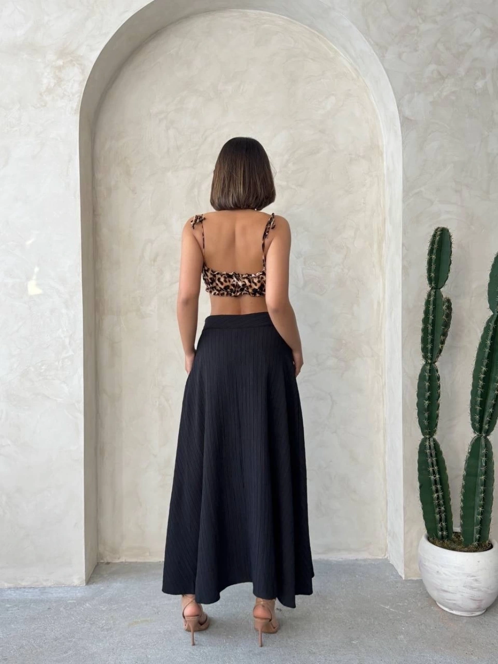 Yıldız baskılı deri etek kahve