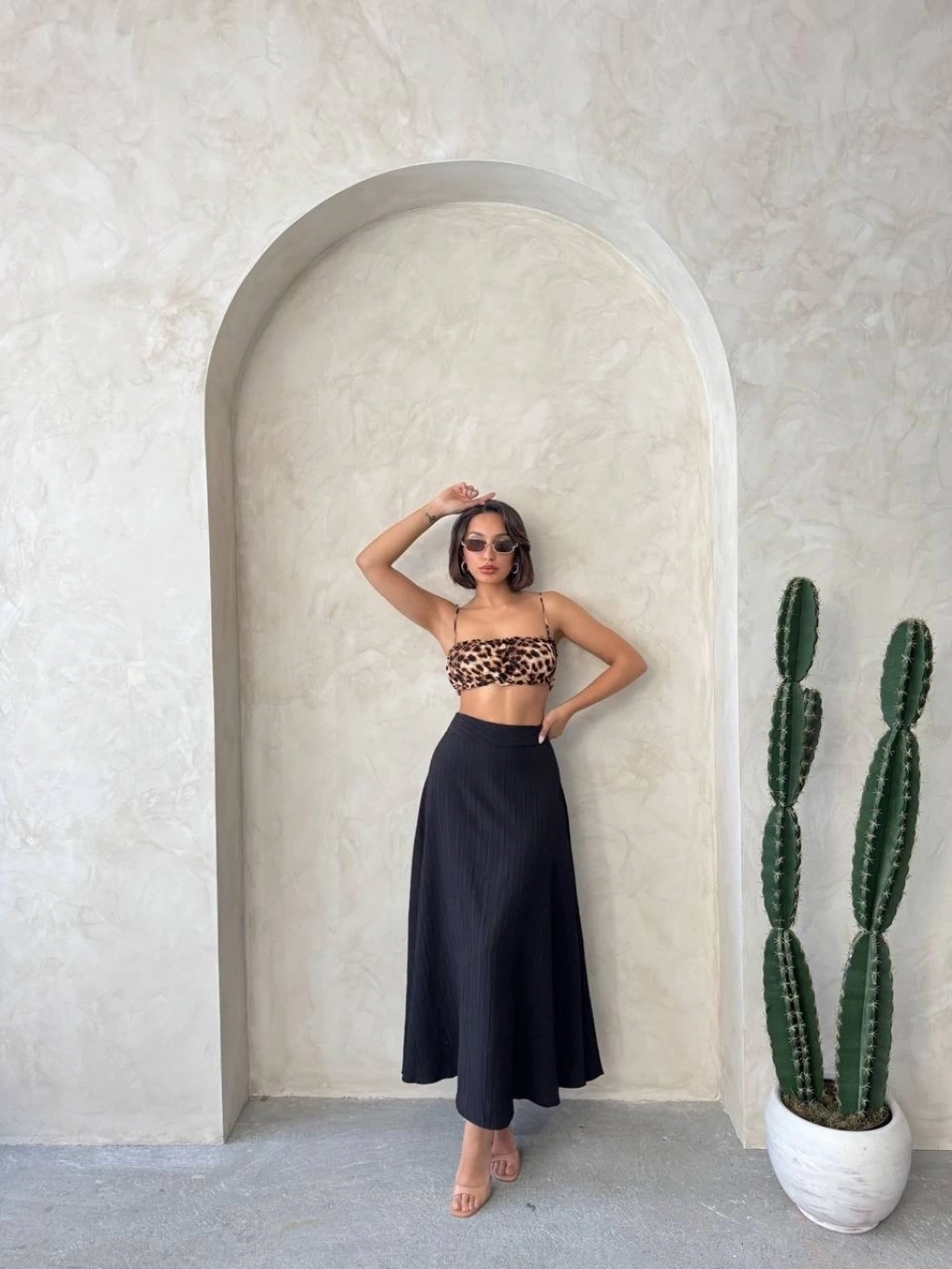 Müslin kumaş keten uzun etek antrasit pt