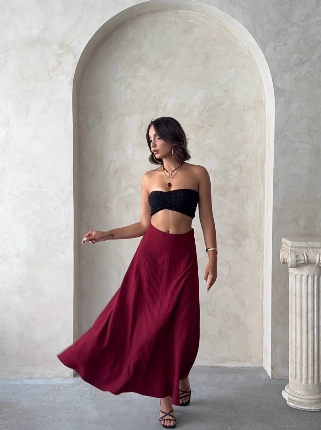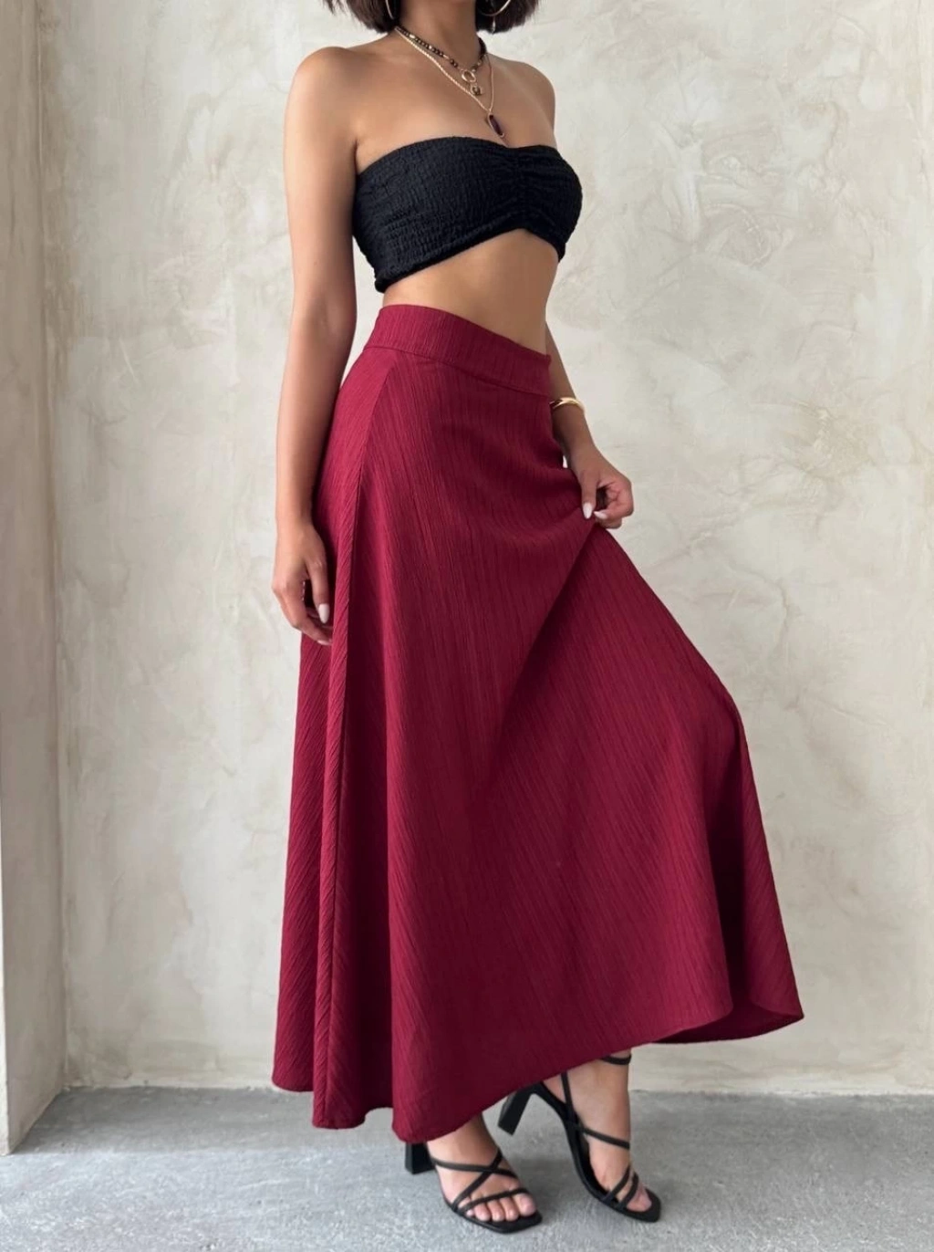 Deri garnili kaz ayağı kaşe etek siyah h24604