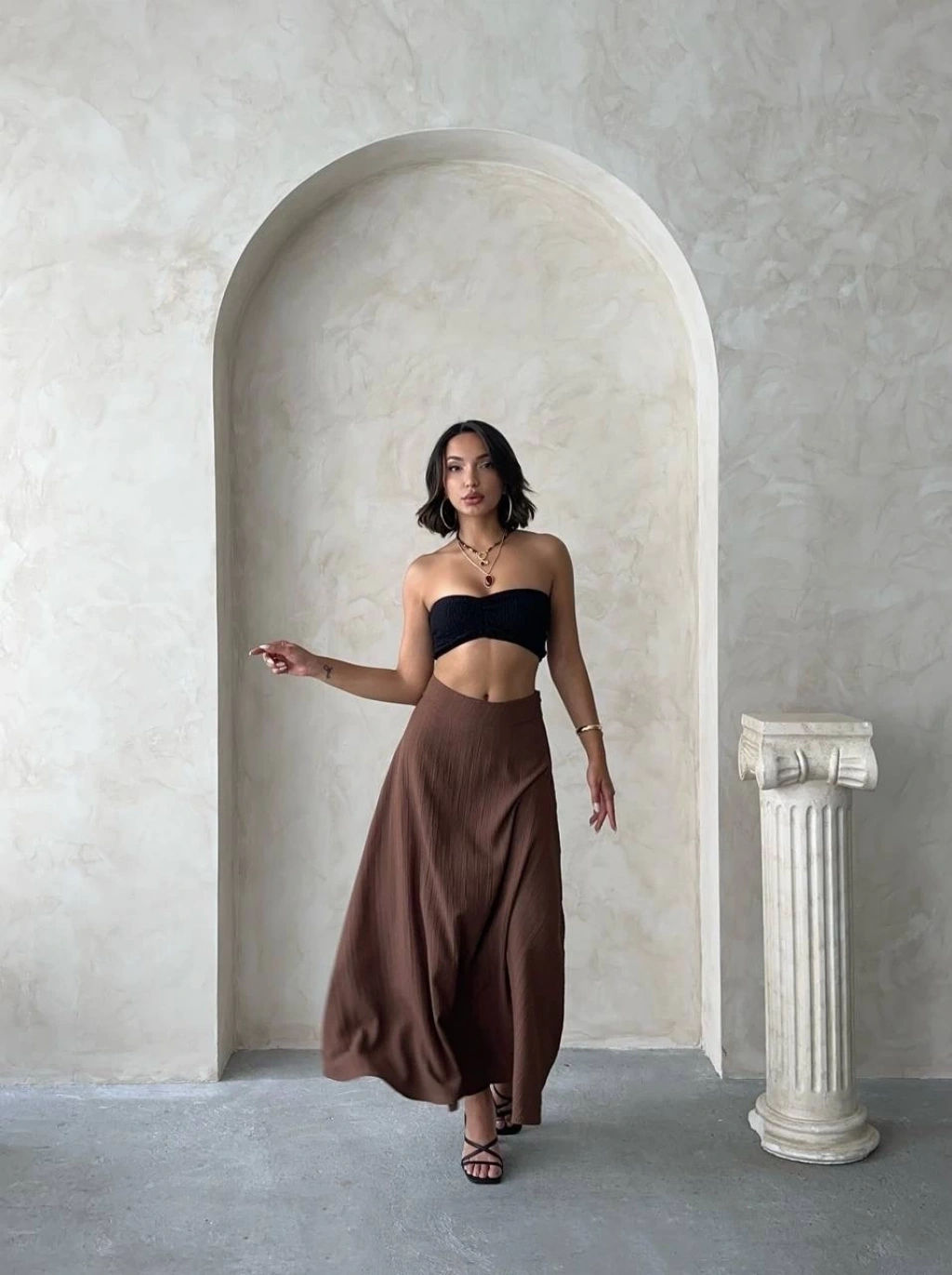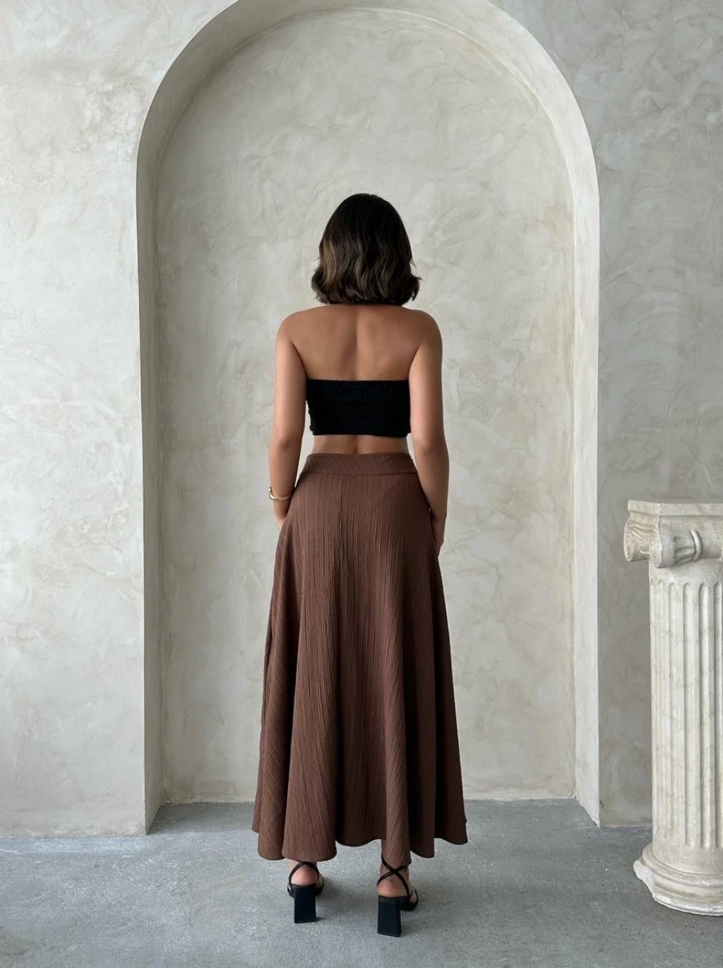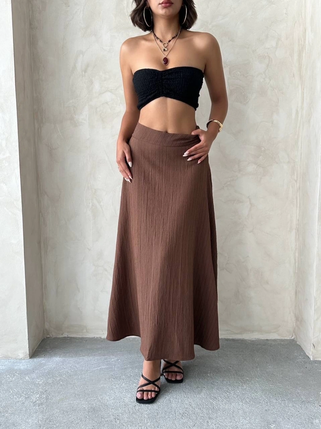 Müslin kumaş keten uzun etek antrasit pt