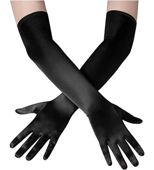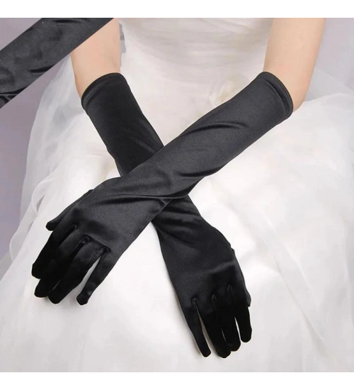 Uzun Boy Ekstra Parlak Saten Eldiven Siyah Renk NessiWorld
