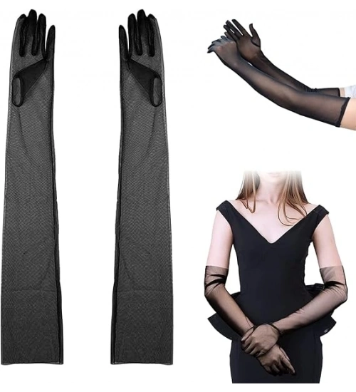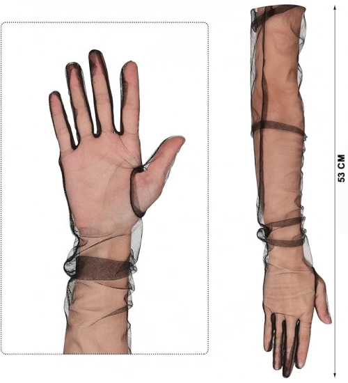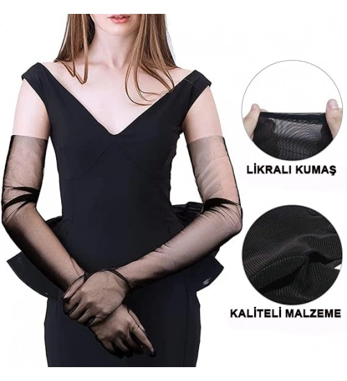 Uzun Boy Likralı Siyah Renk Yetişkin Mega Tül Eldiven 53 cm