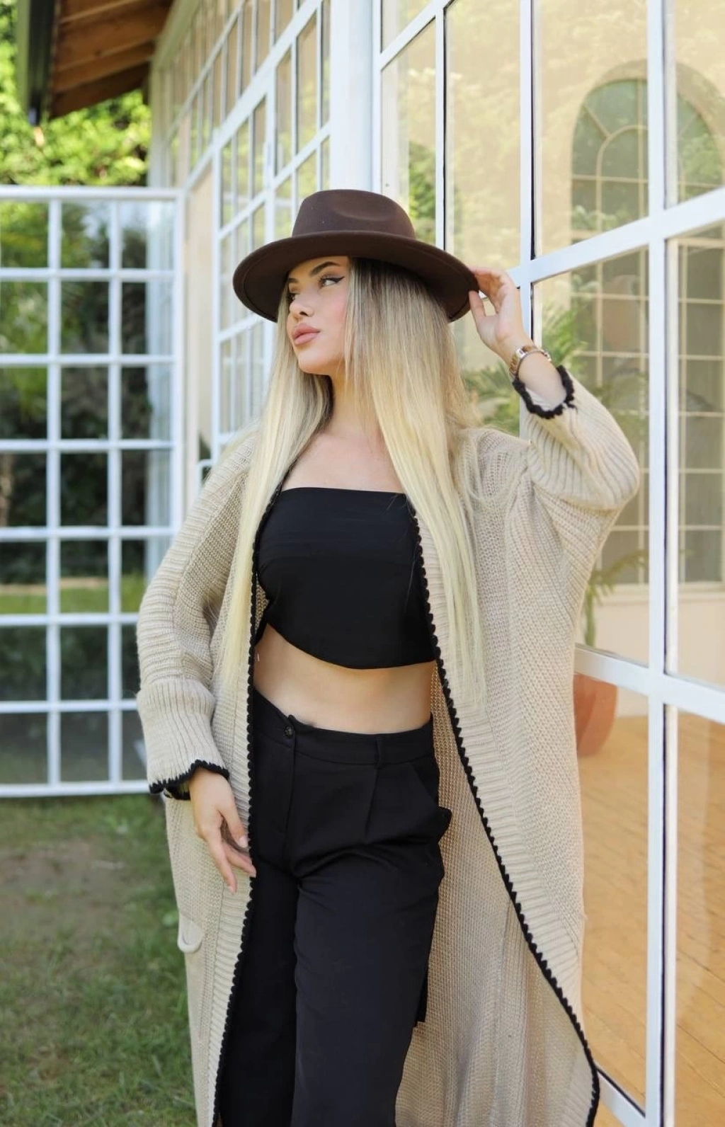 Uzun hırka çoban dikiş bej ile tarzınızı ve konforunuzu ön plana çıkarabilirsiniz.