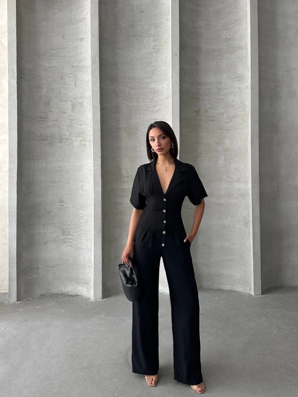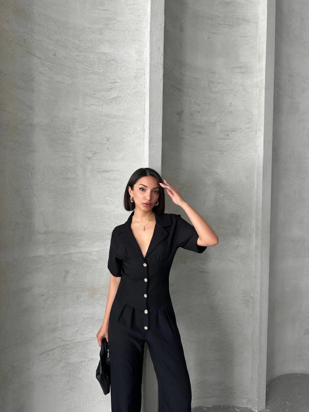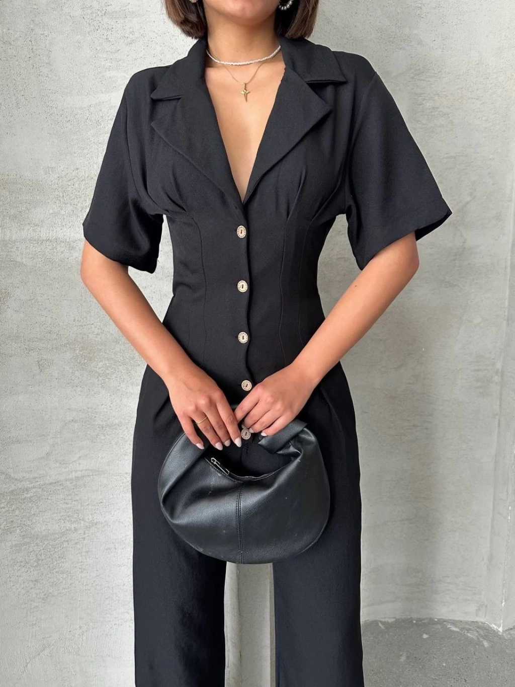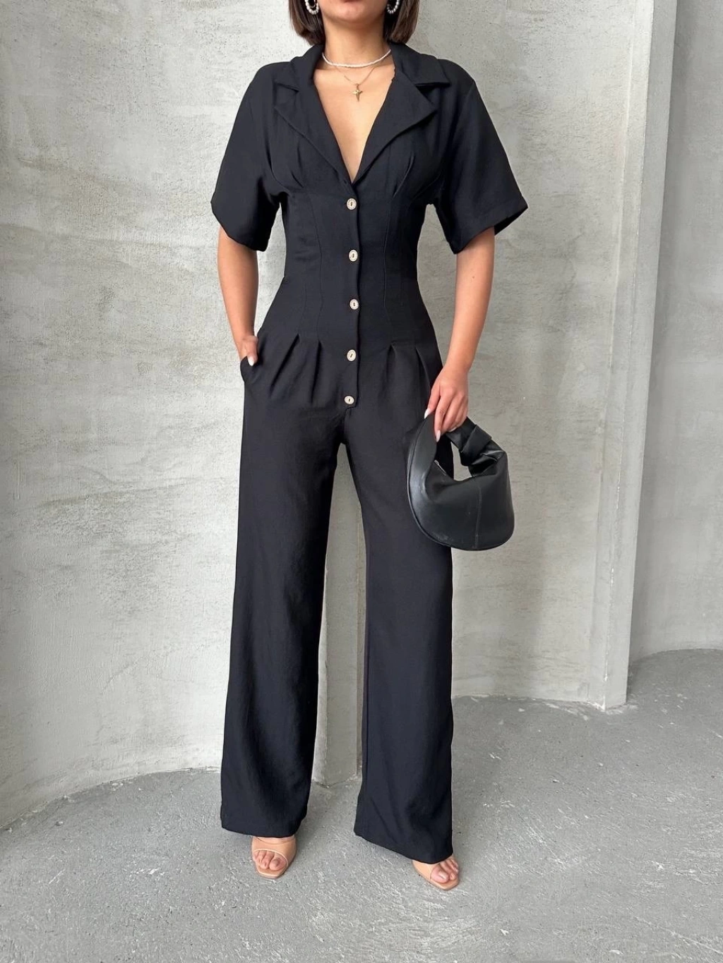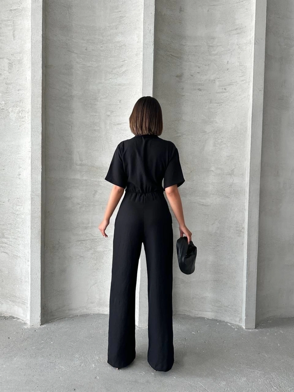 Kuşaklı gömlek yaka salaş tulum bej s255822