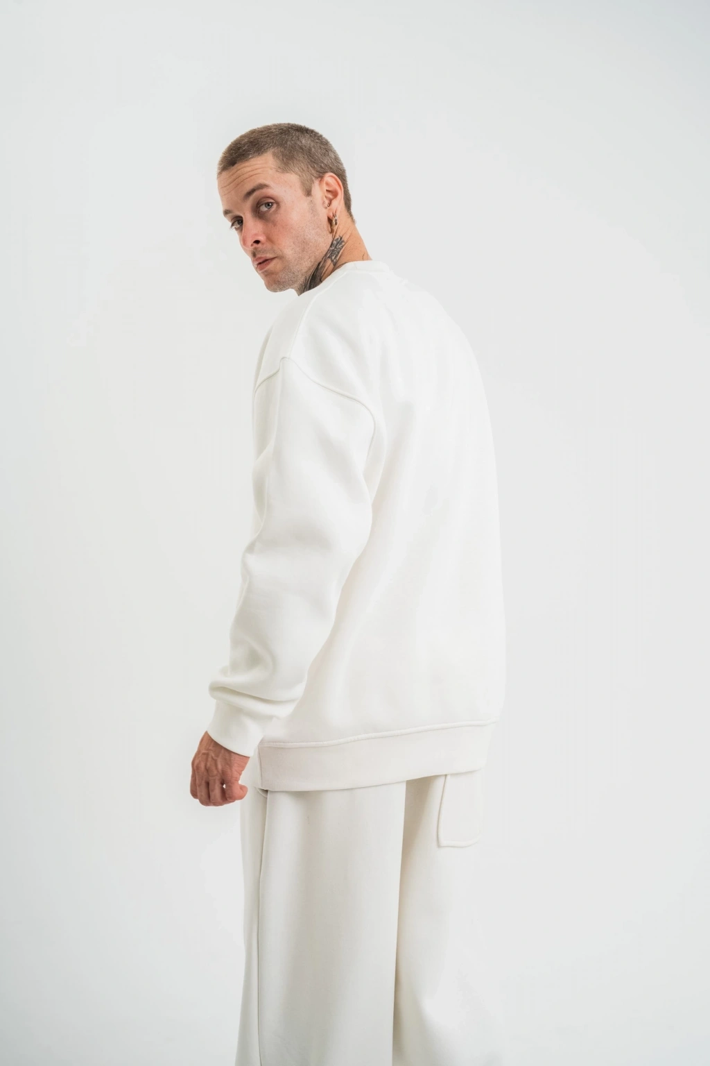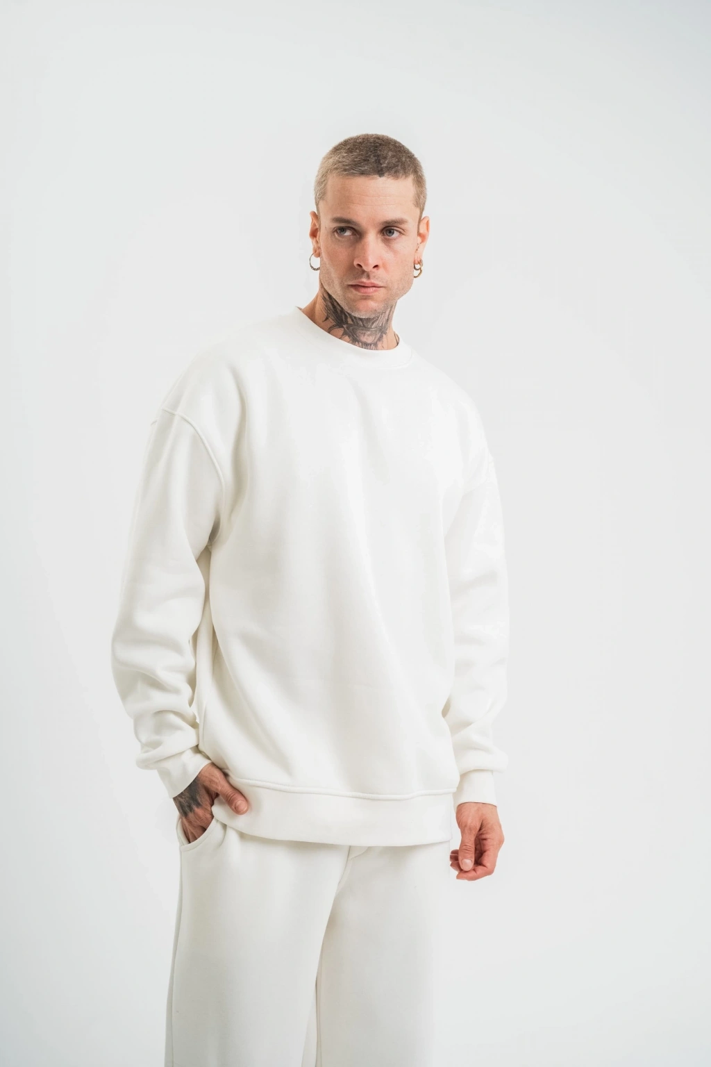 Oversize Üç İplik Kapüşonlu SweatShirt - Beyaz