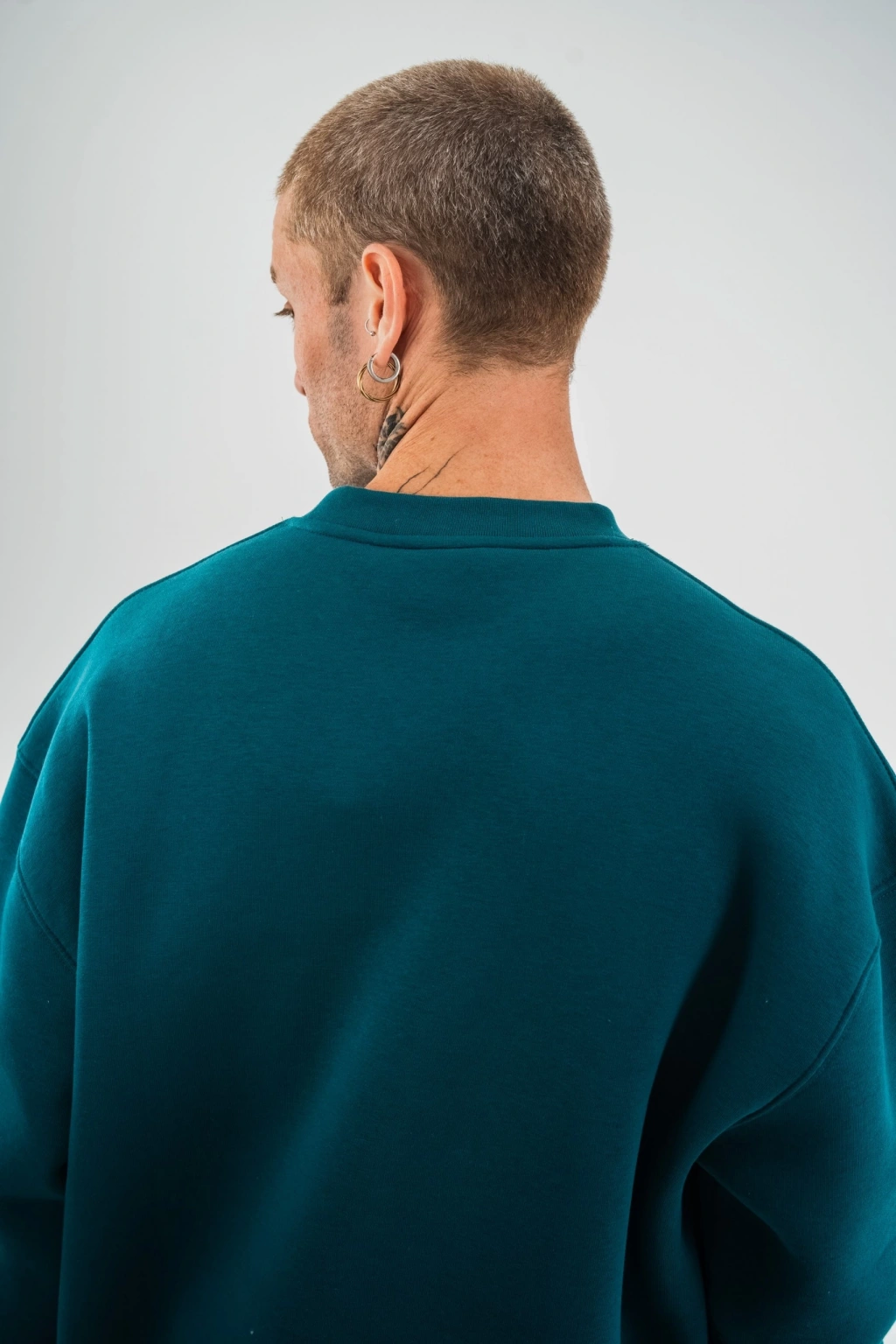 Erkek Oversize Üç İplik Kapüşonlu Sweat – Siyah Kol ve Etek Ribana Detaylı, Ön ve Sırt Baskılı, Kanguru Cepli Rahat Kalıp Model