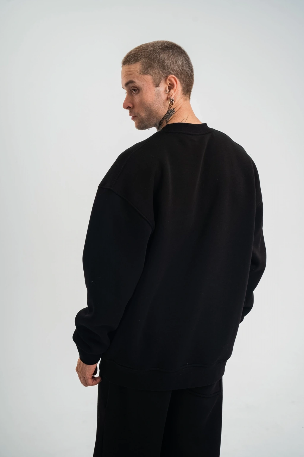 Erkek Premium Nakışlı Kapşonlu Sweatshirt Double Oversize Üç İplik Pamuklu - Siyah