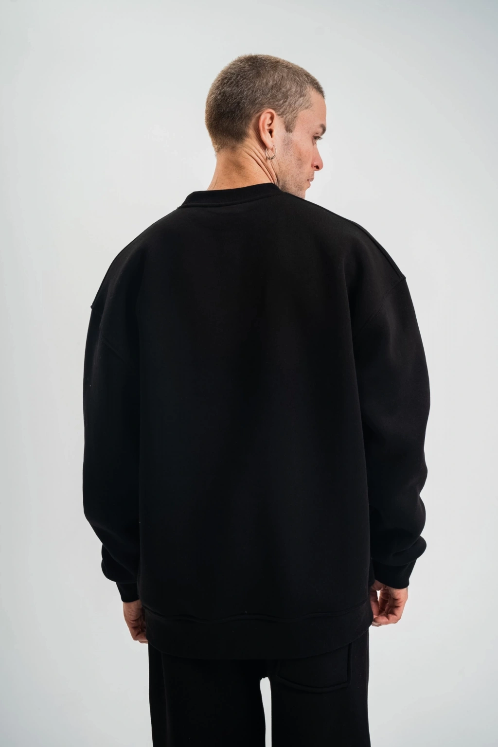 Unisex Bisiklet Yaka Özel Pis Dikişli Yıkamalı SweatShirt - Siyah