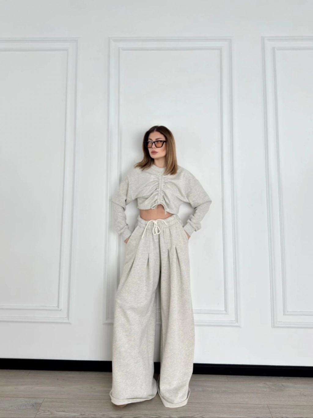 Kadın Kadife Oversize Takım – Gömlek ve Pantolon İkili Set Füme Corduroy Şıklığı, Rahat ve Zarif Duruş Yumuşak Dokulu Kadife Kumaş, Düğmeli Gömlek Üst ve Lastikli Pantolon Alt Parça ile Gün Boyu Konfor- Gri