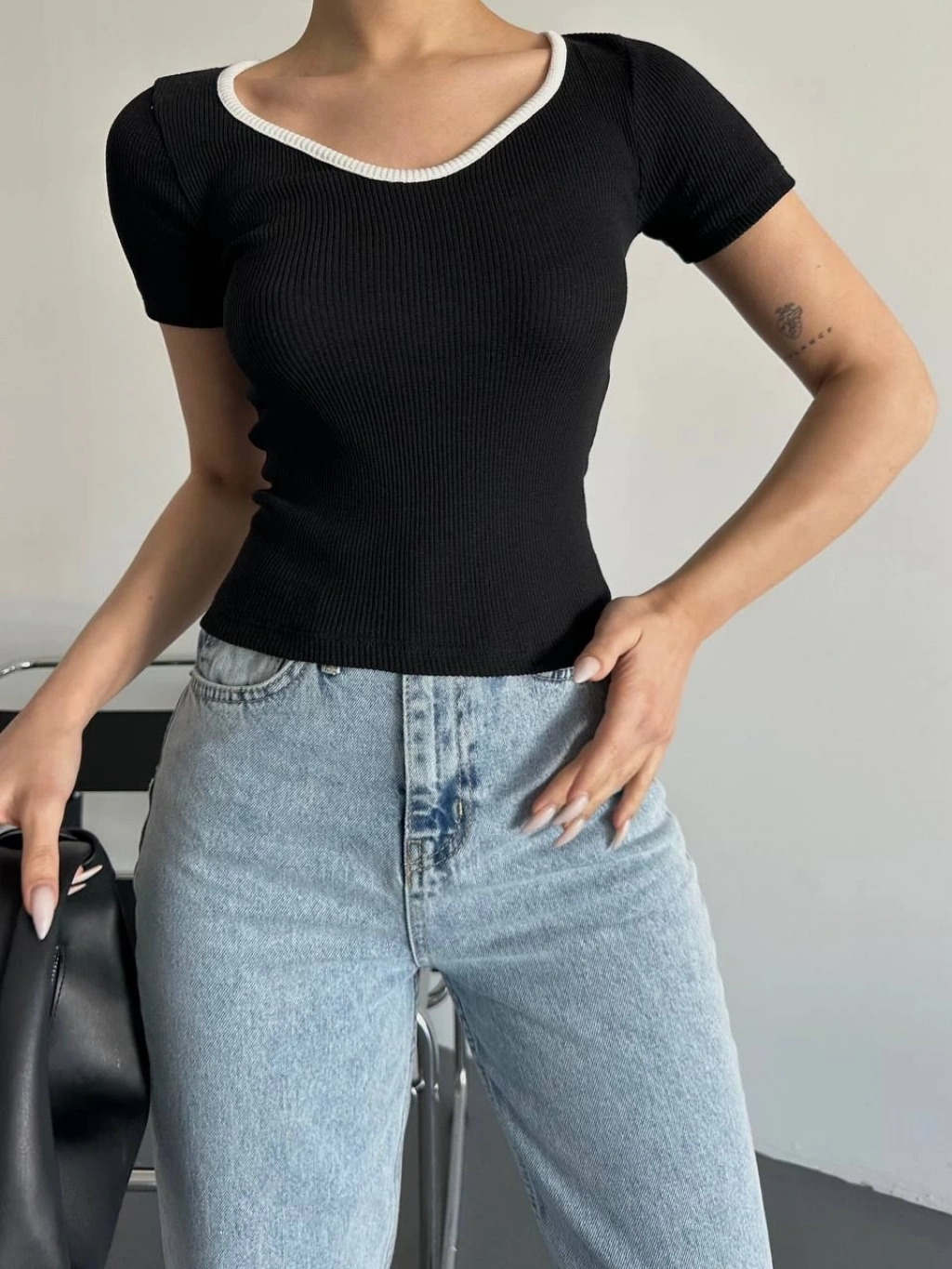 Omzu Açık Fermuarlı Bluz siyah T4330