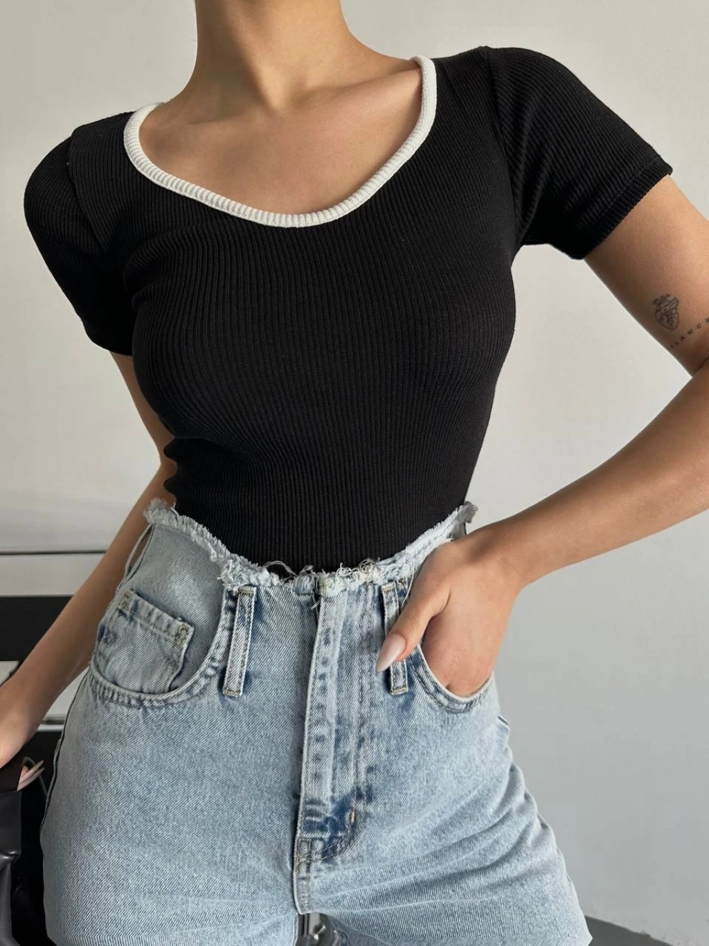 Madonna Yaka Düğmeli Bluz siyah t4329