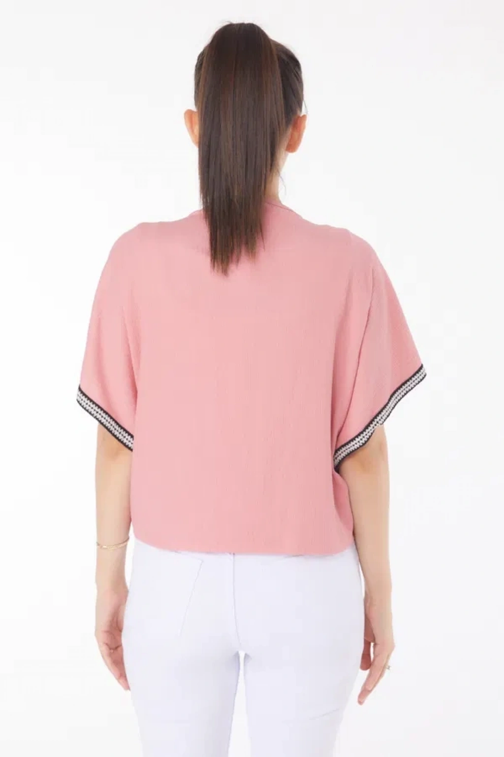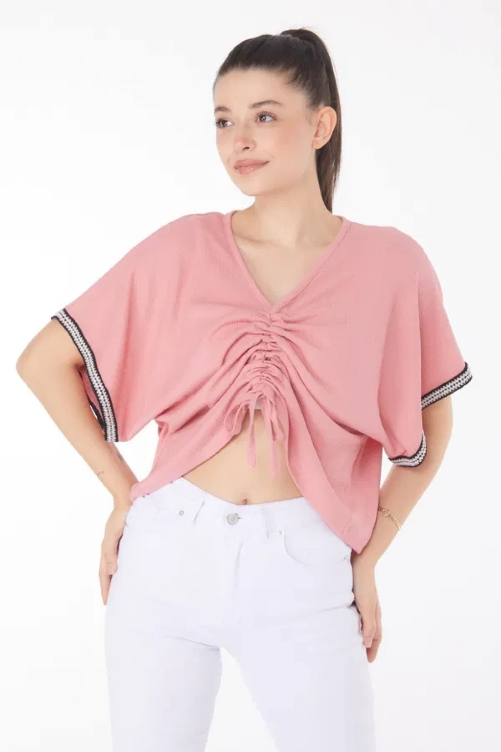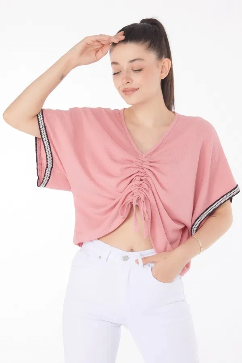 Fitilli Bisiklet Yaka İkili Bluz Pembe T4341