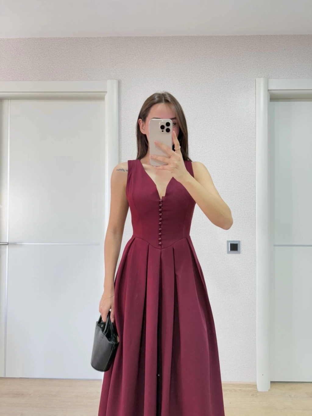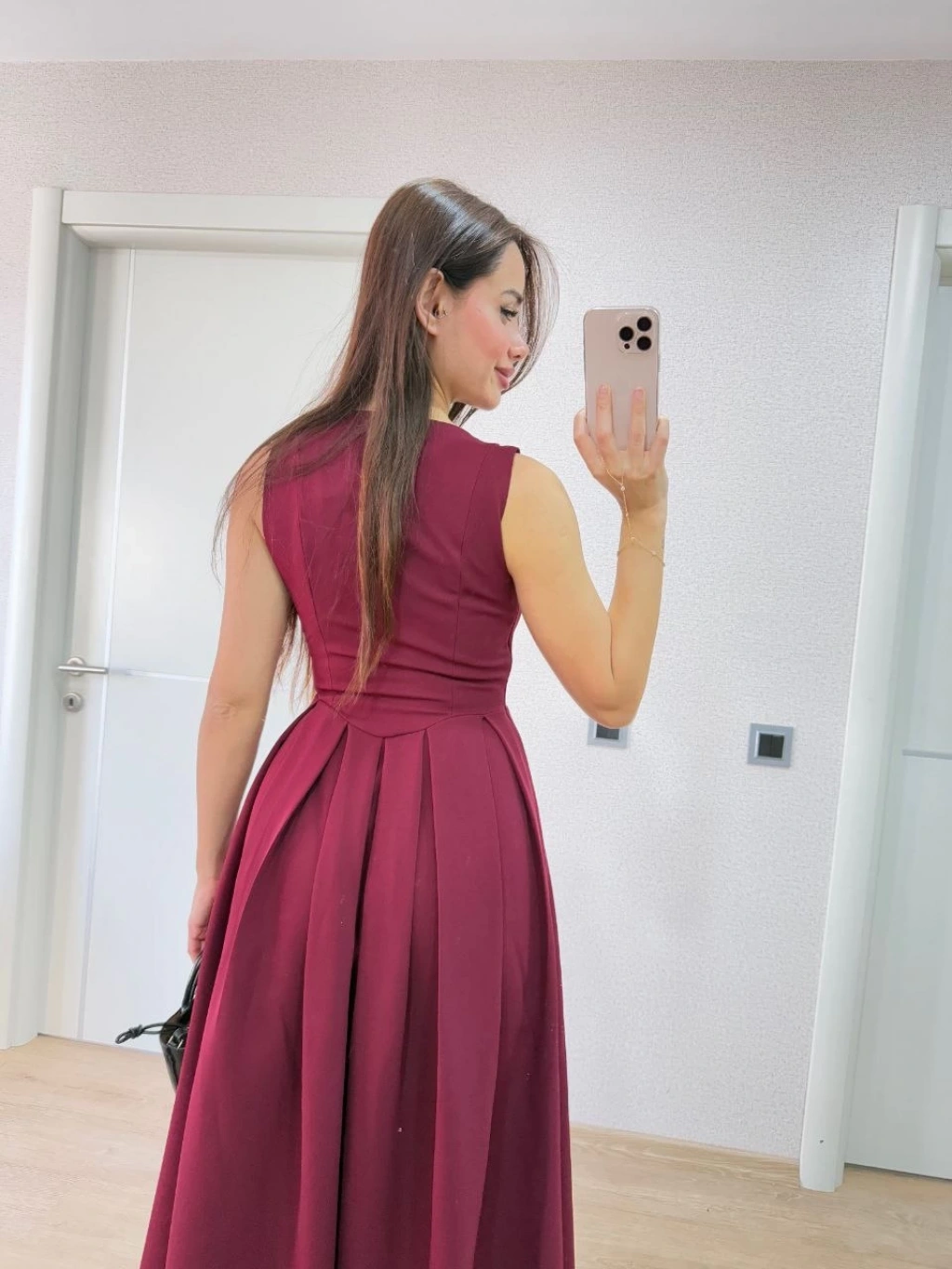 Bürümcük Kumaşlı İçi Astarlı Üzgülü Kolsuz Büzgülü Uzun Elbise - Siyah