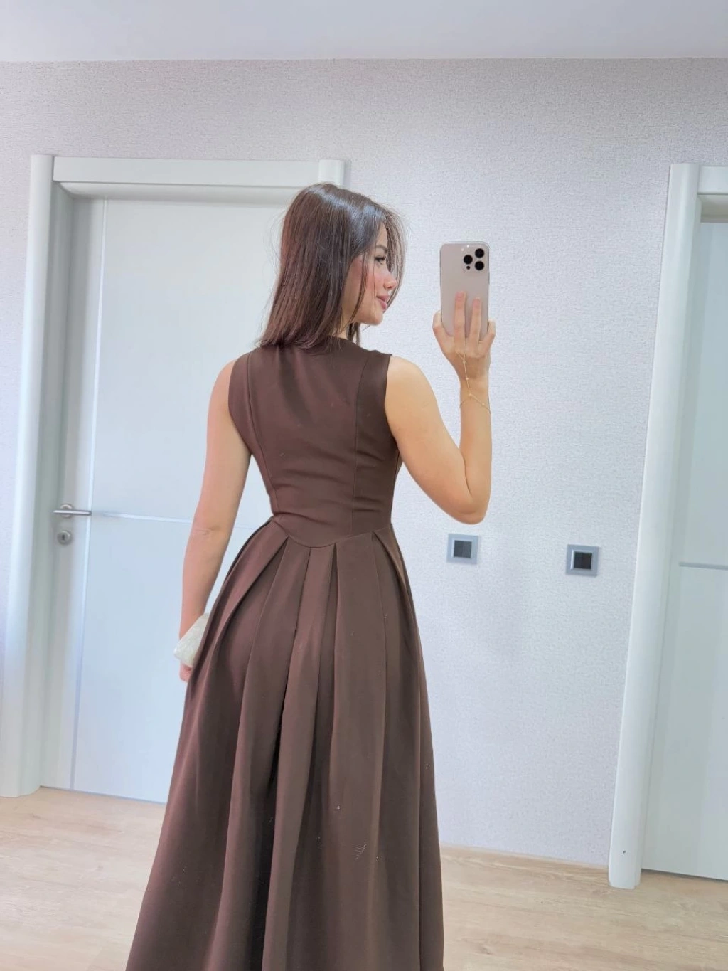 Kadın Boğazlı Triko Elbise – Uzun Fitilli Esnek Dokuma, Tam Kalıp, Kışlık & Baharlık Şık Rahat Stil, 130 cm Midi Boy Elbise - Kahverengi