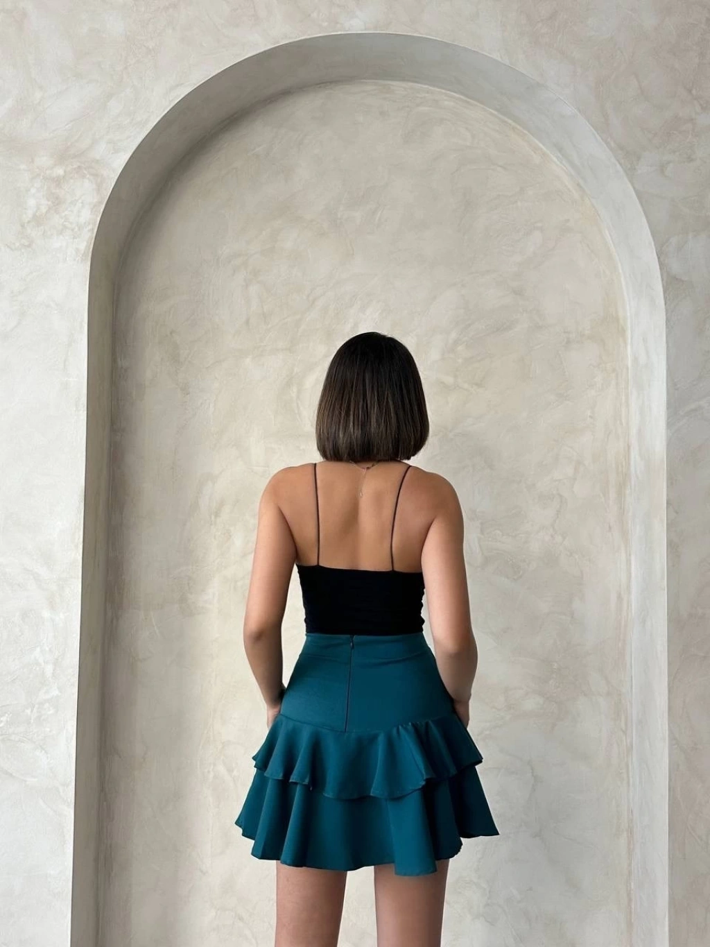 Bu şık ve göz alıcı yeşil eteği günlük şıklığınızda veya özel günlerde tercih edebilir, tarzınıza şıklık katabilirsiniz.