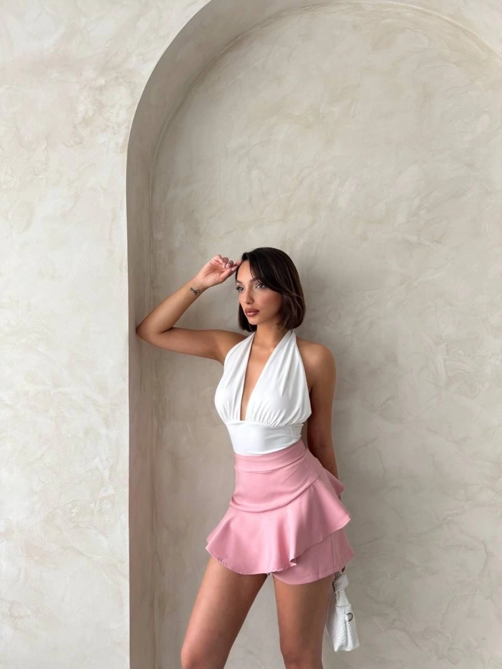 Kapaklı kaşe şort etek siyah beyaz kazayağı h261218