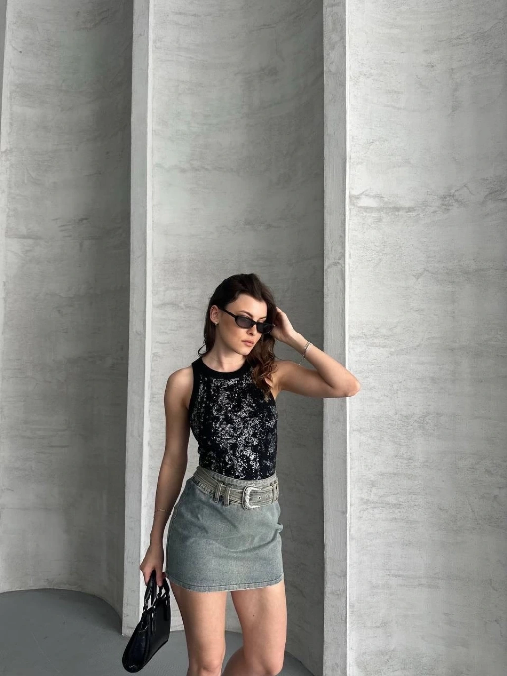 Omzu Açık Fermuarlı Bluz siyah T4330