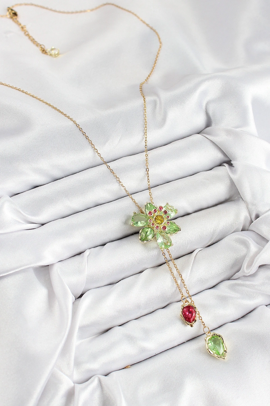 Vıp Pirinç Zirkon Taşlı Çiçek Model Gold Renk Asansörlü Kadın Kolye