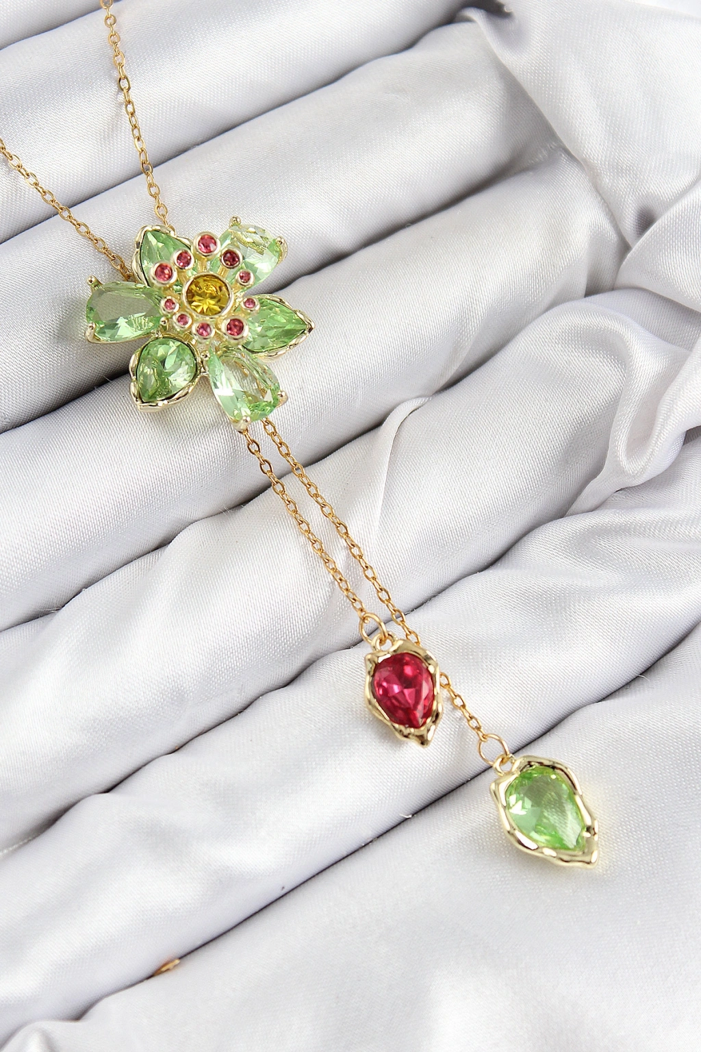 VIP Pirinç Zirkon Taşlı Çiçek Model Gold Renk Asansörlü Kadın Kolye