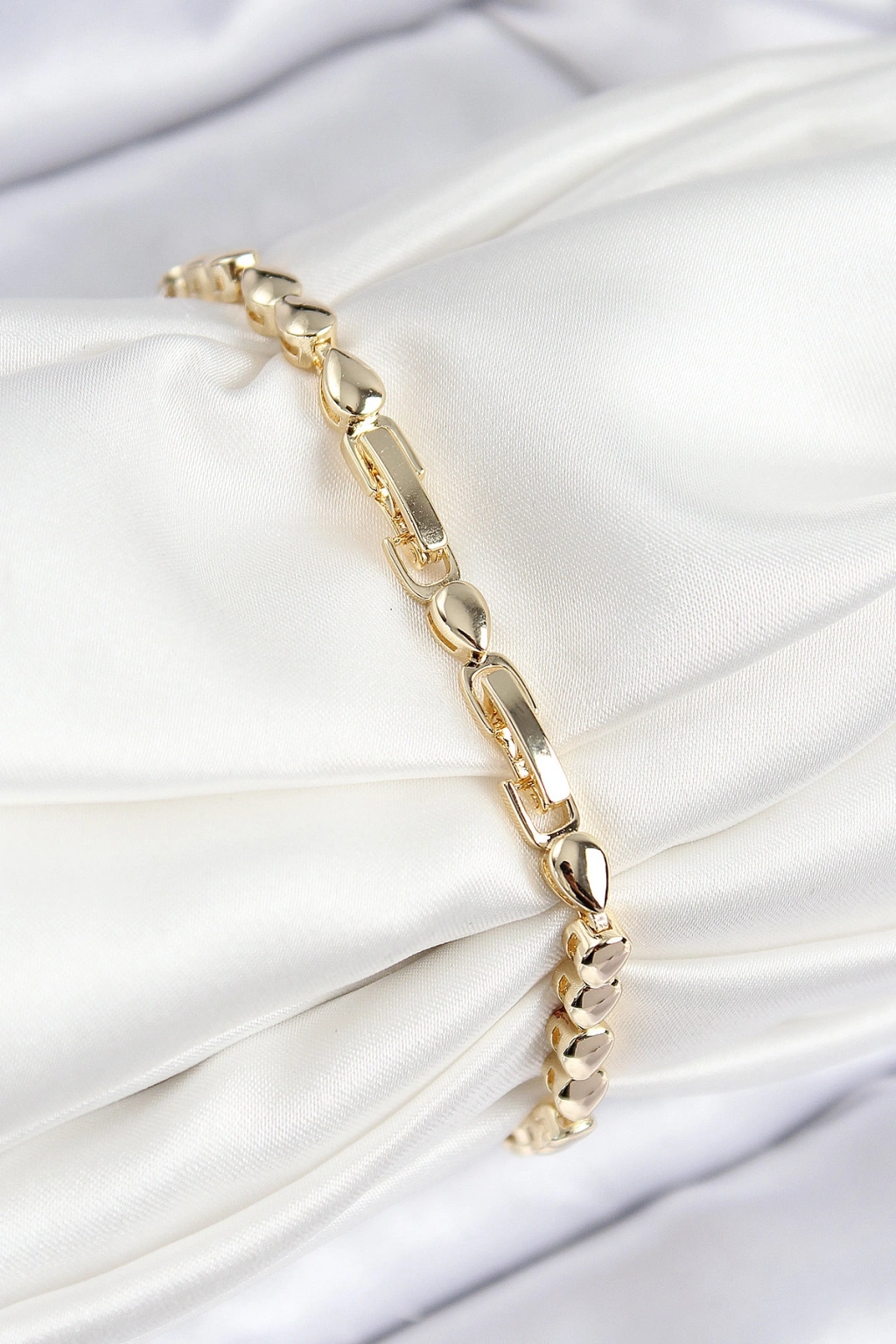 VIP Pirinç Zirkon Taşlı Sıralı Damla Model Gold Renk Kadın Bileklik