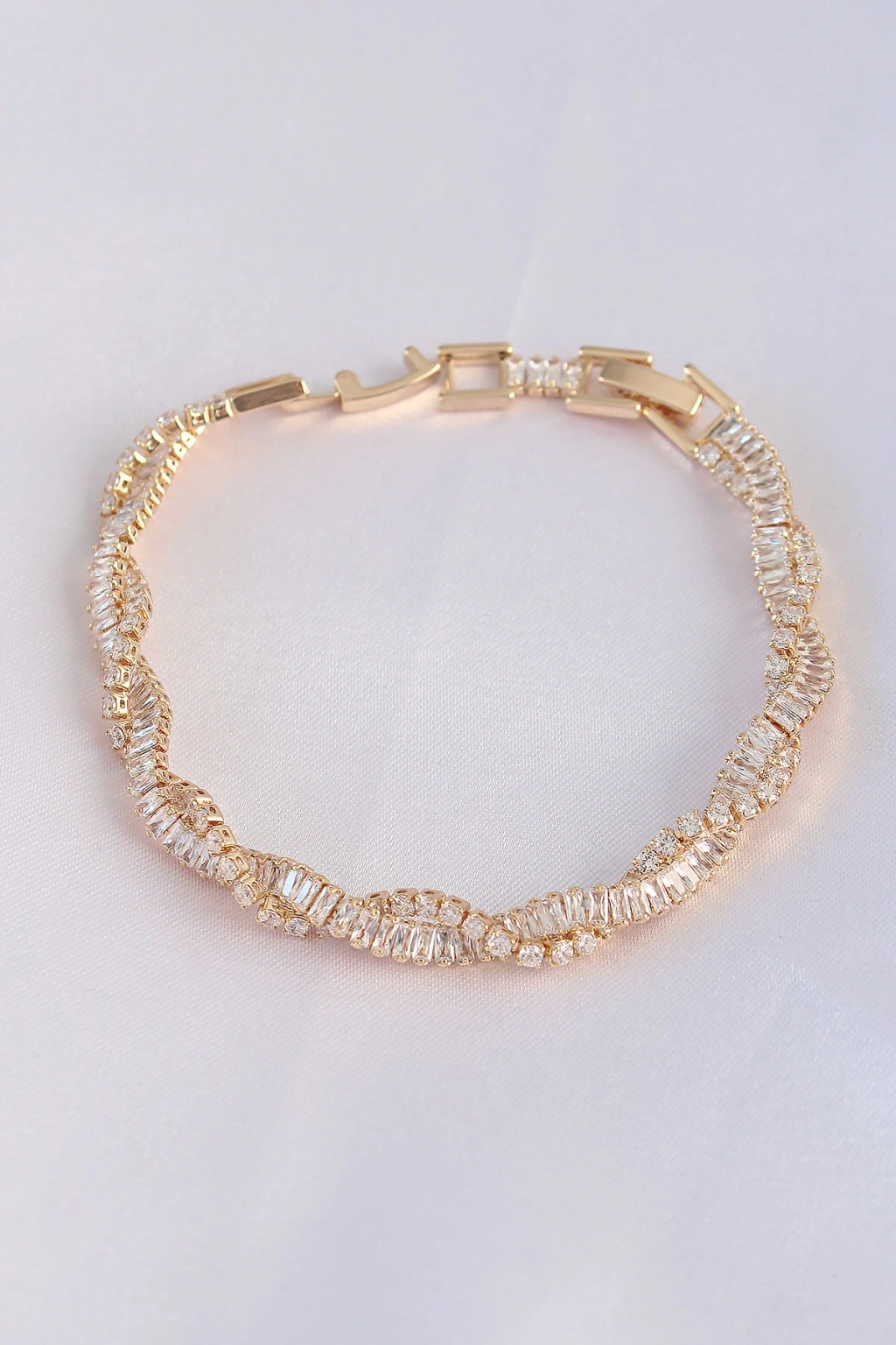 Vip Seri Pirinç Zirkon Taşlı Gold Renk Sarmal Model Bileklik