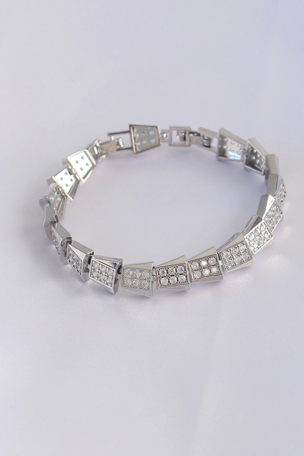 Vip Seri Pirinç Zirkon Taşlı Gümüş Renk Geometrik Bileklik