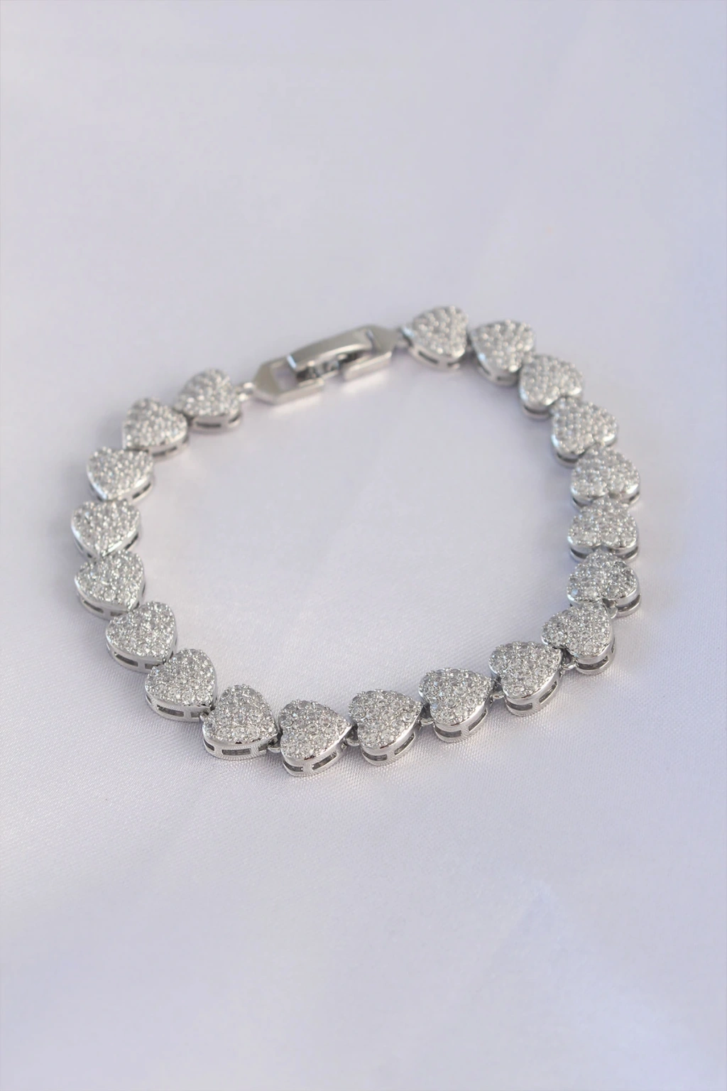 Vip Seri Pirinç Zirkon Taşlı Gümüş Renk Kalp Model Bileklik