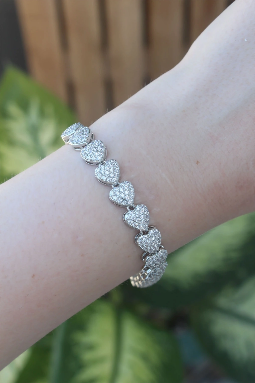 Vip Seri Pirinç Zirkon Taşlı Gümüş Renk Kalp Model Bileklik
