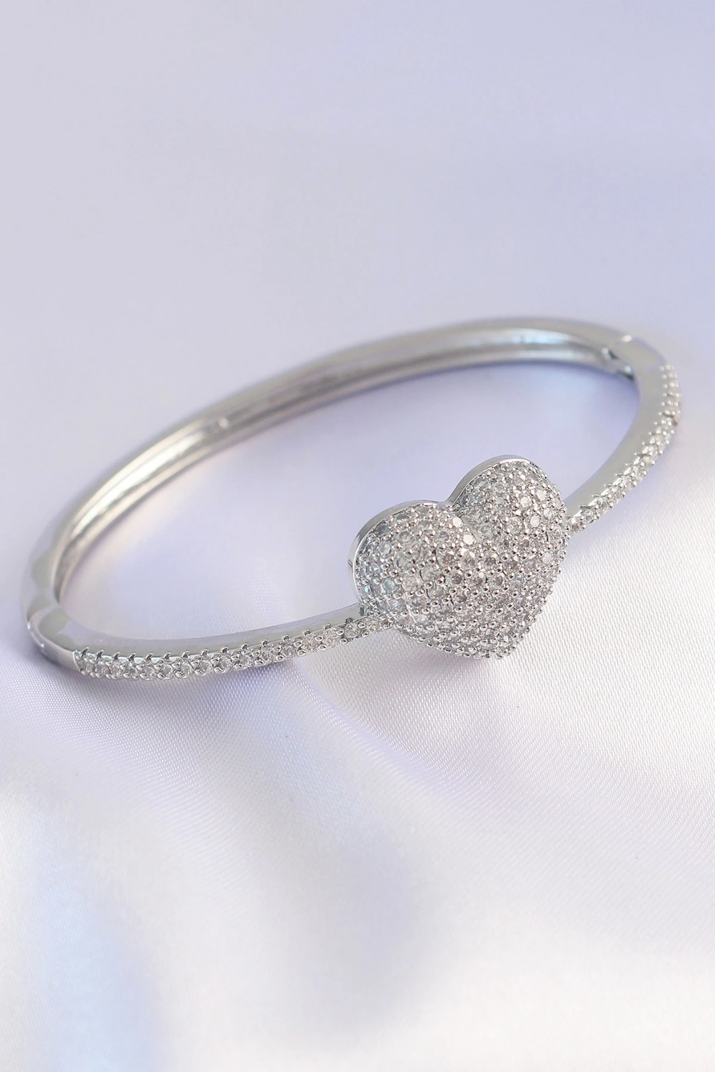 Vip Seri Pirinç Zirkon Taşlı Gümüş Renk Kalp Model Kelepçe