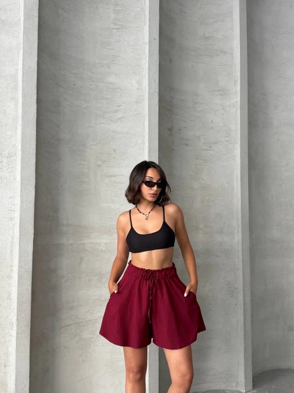 Müslin kumaş şort bağcıklı siyah pt