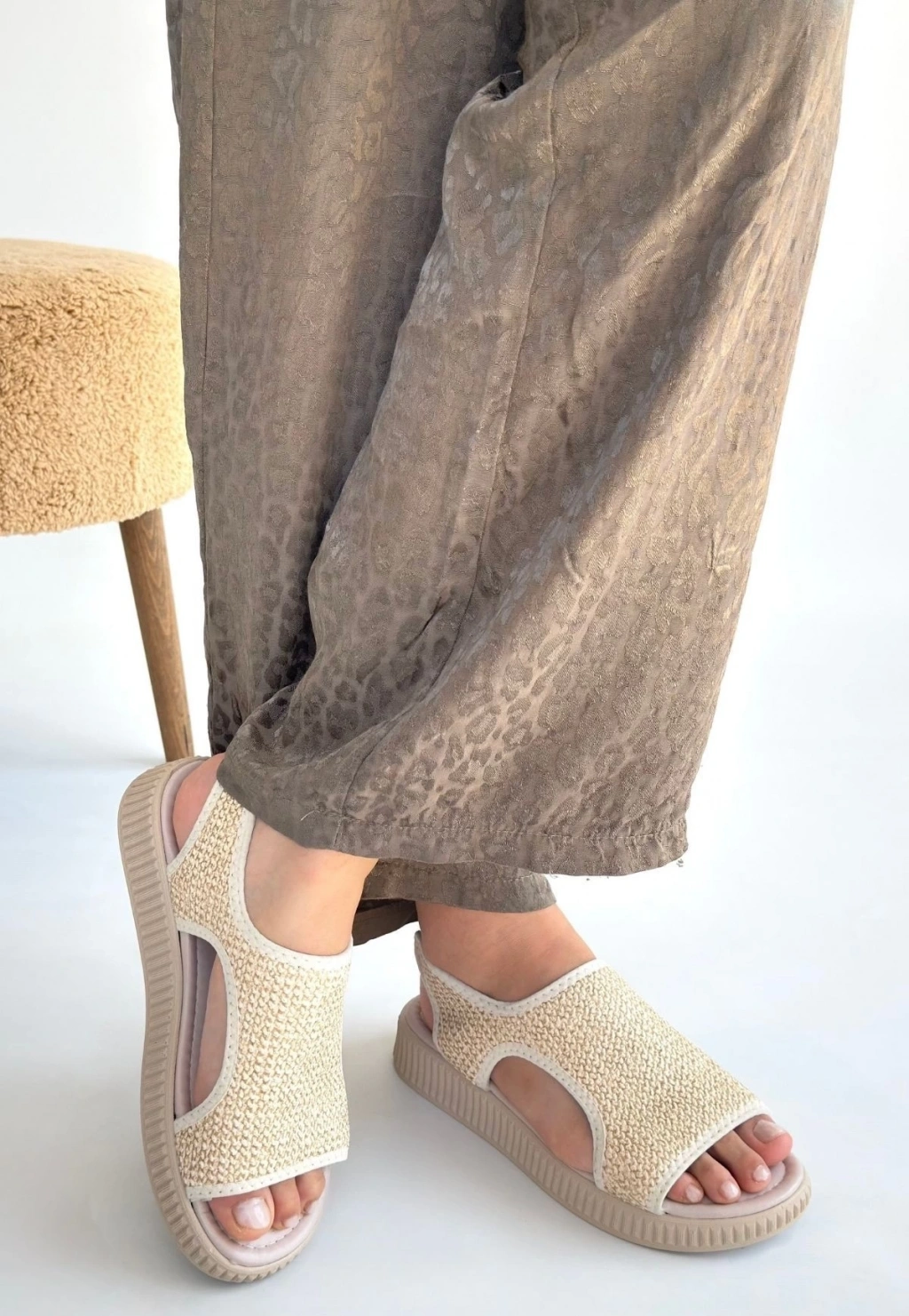 Saide Siyah Cilt Cırt Cırtlı Sandalet