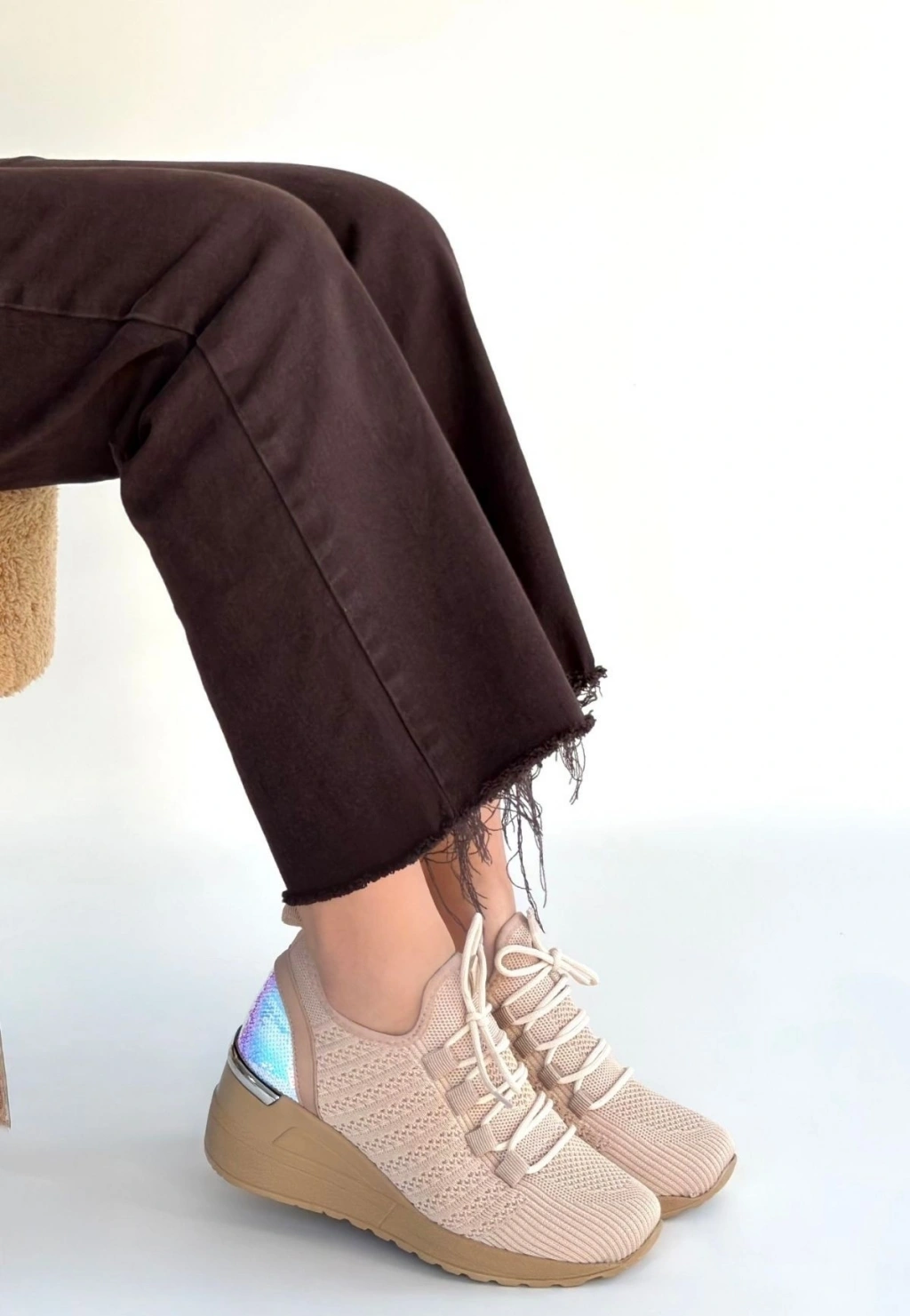 Lunga Bej Cilt Bağcıklı Spor Ayakkabı