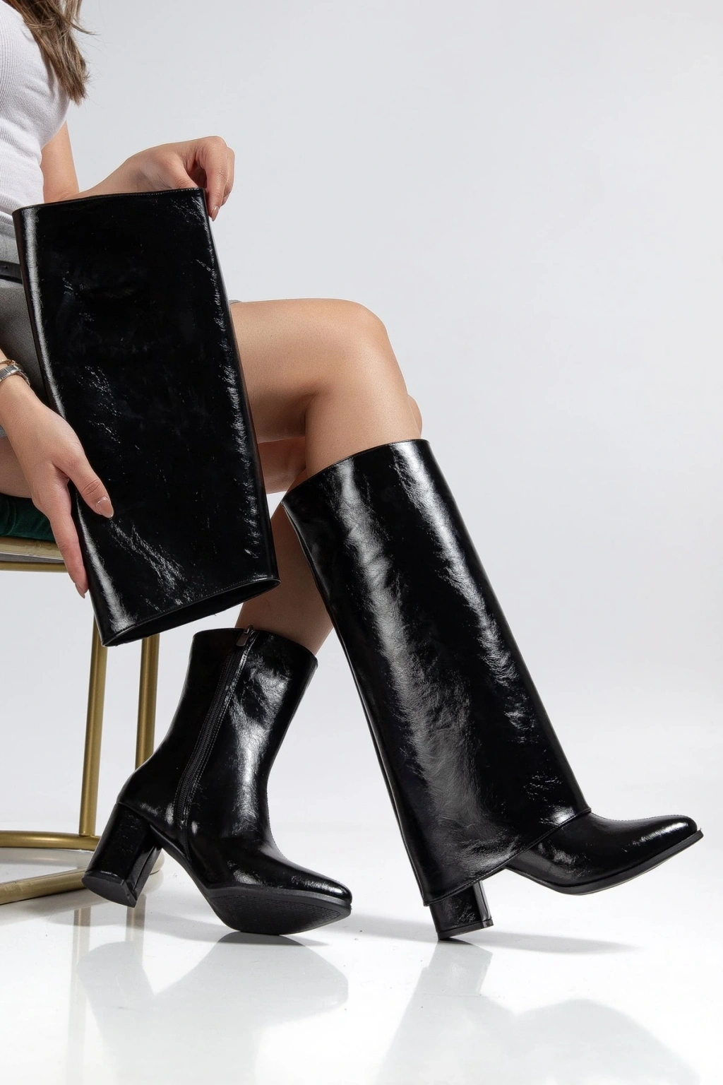 • Wila Siyah Parlak Topuklu Tak Çıkar Çizme