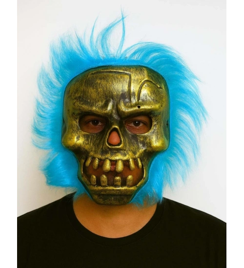 Wild Skull - Bakır Kafatası Turkuaz Saçlı İskelet Maske