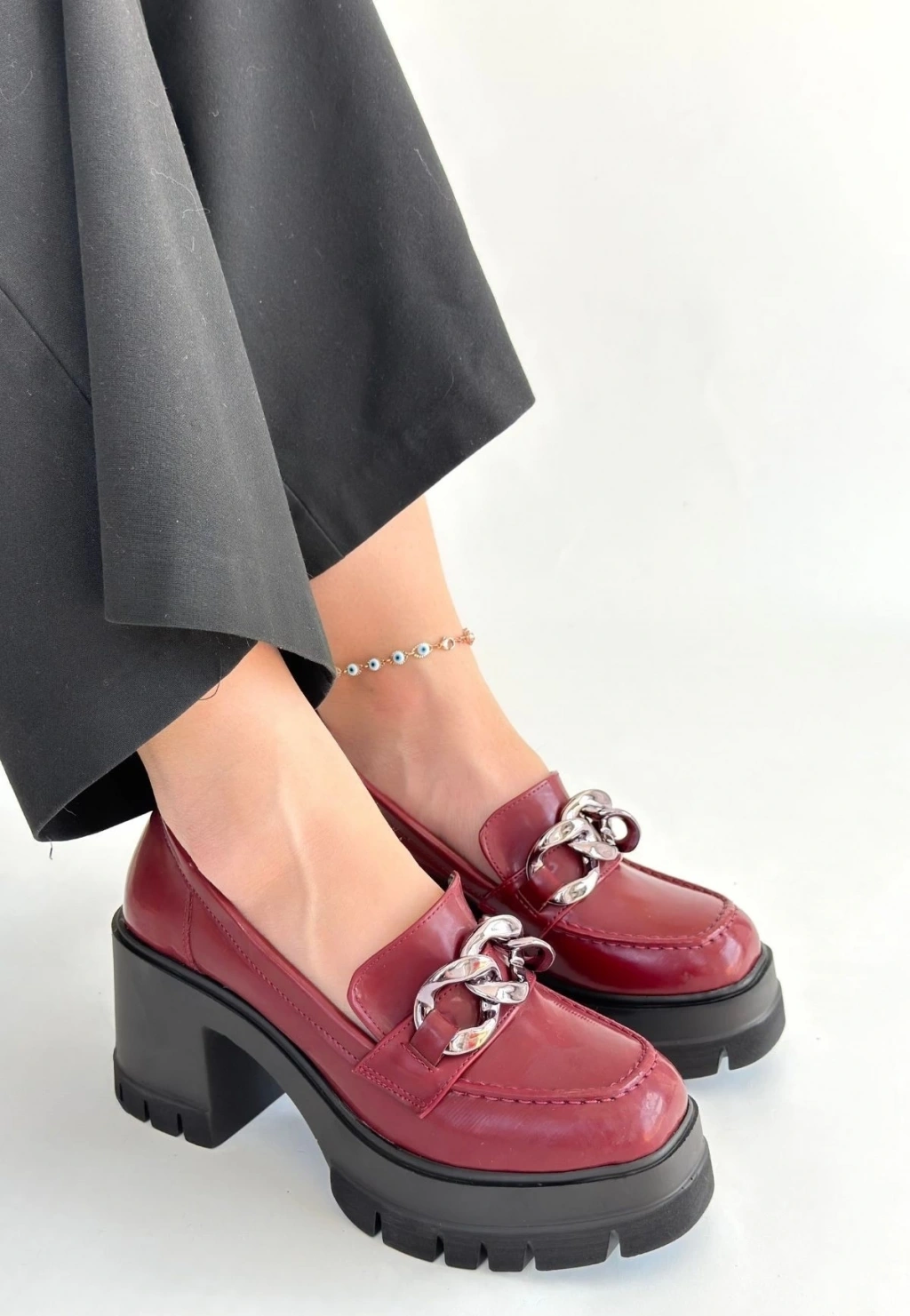 Motya Bordo Rugan Topuklu Ayakkabı
