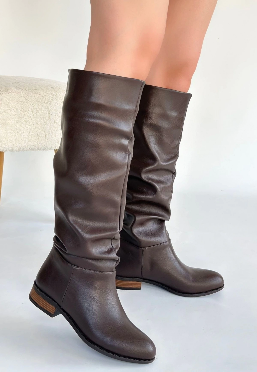 Tiyan Kahverengi Cilt Topuklu Çizme