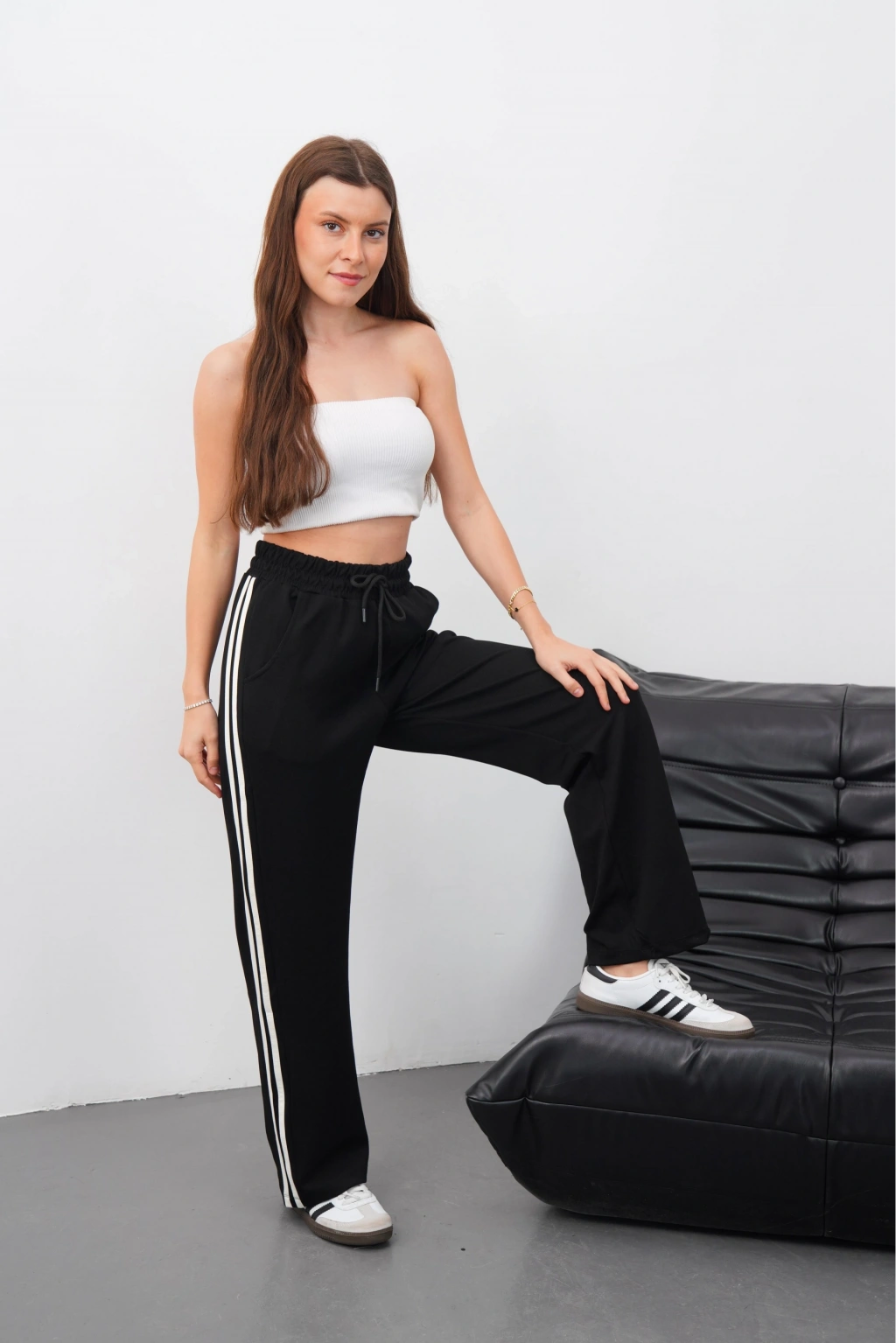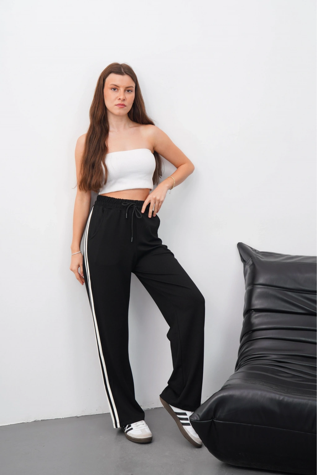 İspanyol yırtmaçlı paça deri pantolon siyah hn