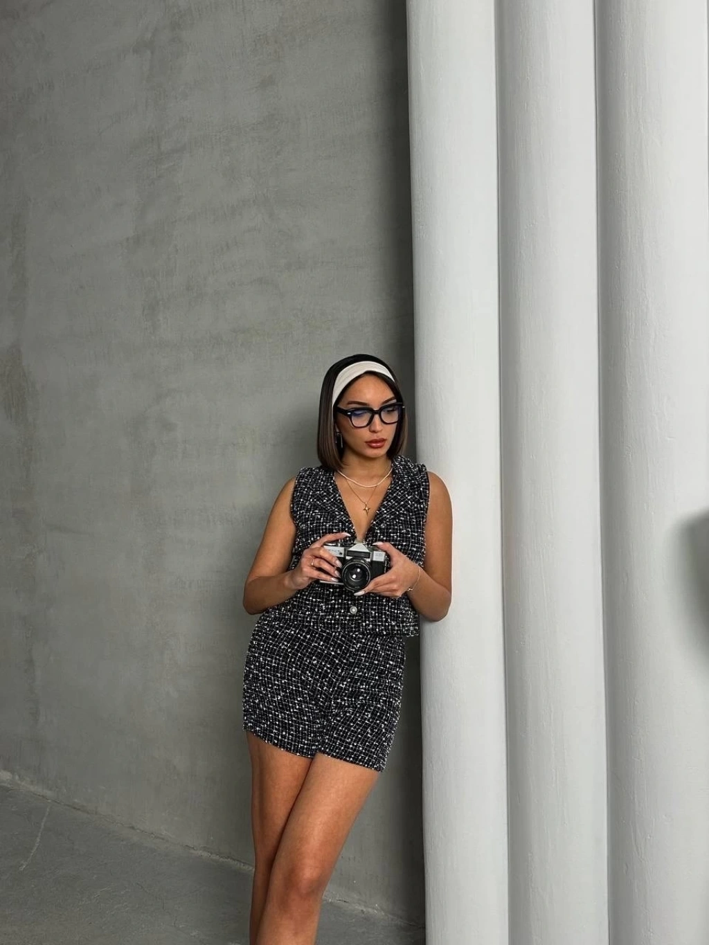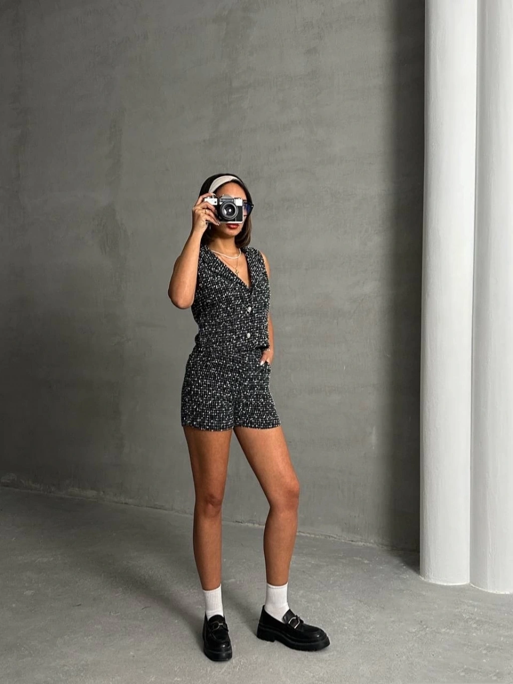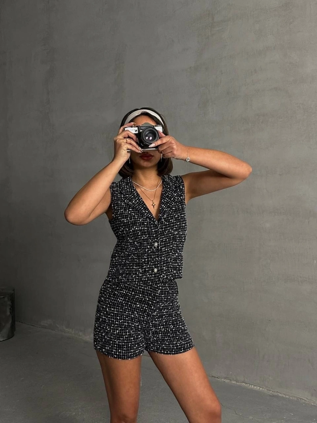 3 iplik içi Şardonlu yarım fermuarlı alt üst takım siyah