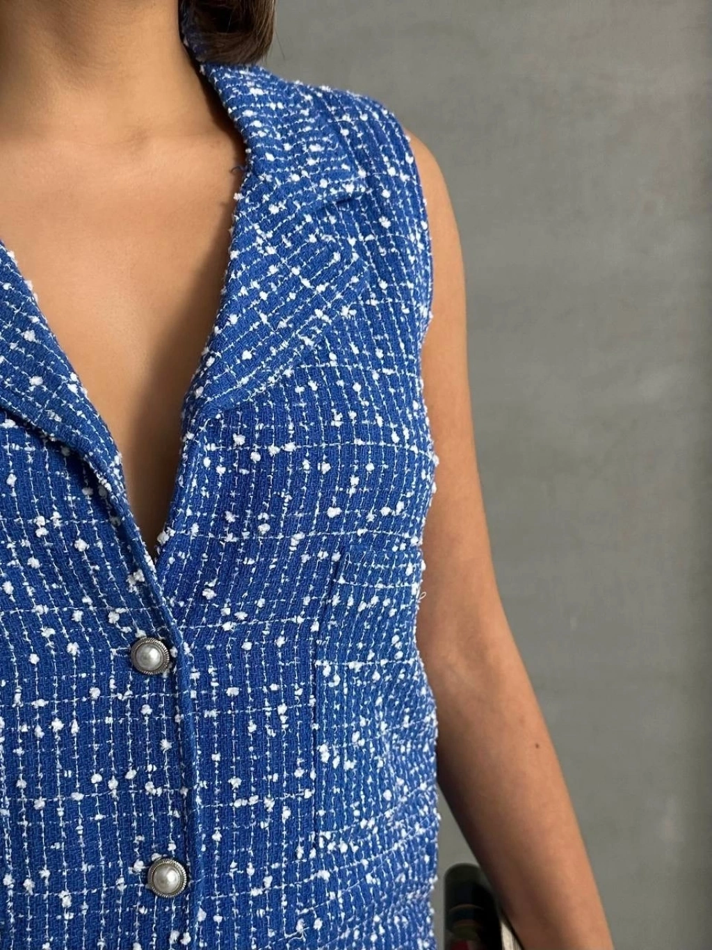 Keten yelek pantolon takım indigo pt