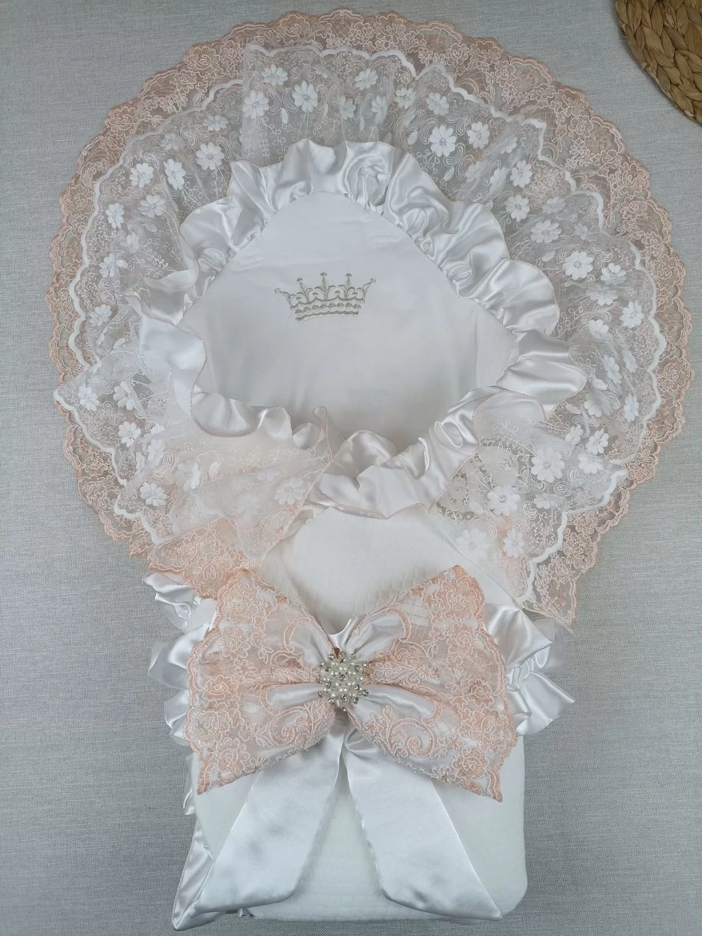 Yenidoğan Bal Peteği Nakışlı Lüks Kundak Bebek Battaniyesi Ekru