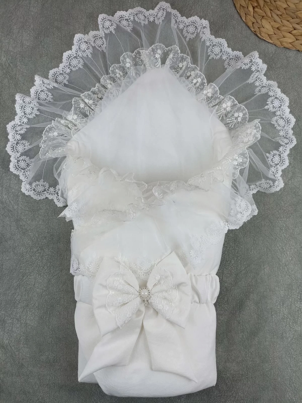 Yenidoğan Bambu Nakışlı Delüks Kundak Bebek Battaniyesi Ekru