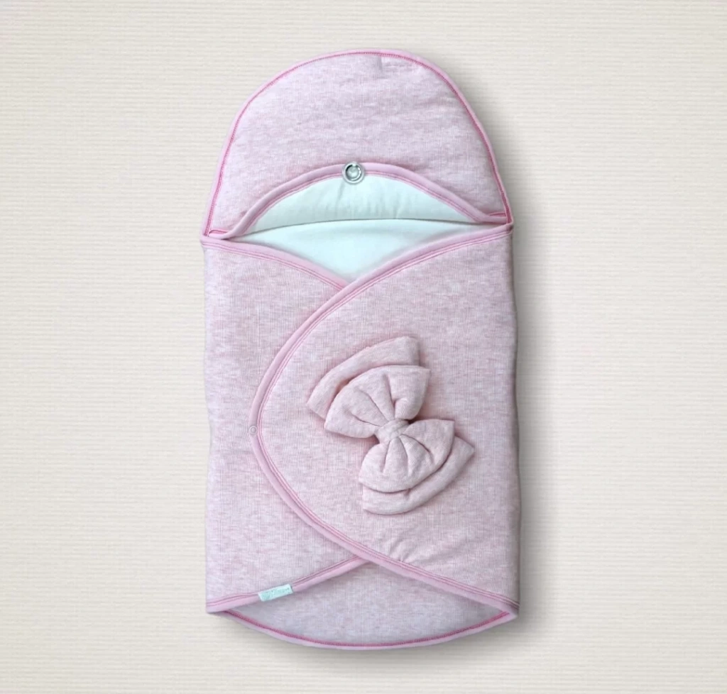 Yenidoğan Düğme Detaylı Çizgi Efektli Çift Fiyonk Klasik Kundak Bebek Battaniyesi Pembe
