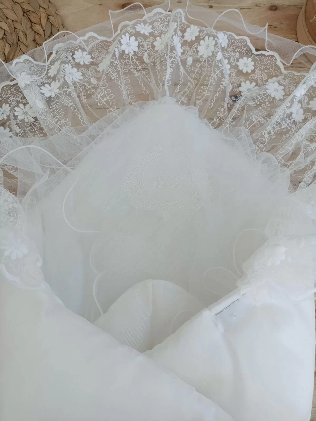Yenidoğan Gelinlik Duvaklı Trilüks Kundak Bebek Battaniyesi Ekru