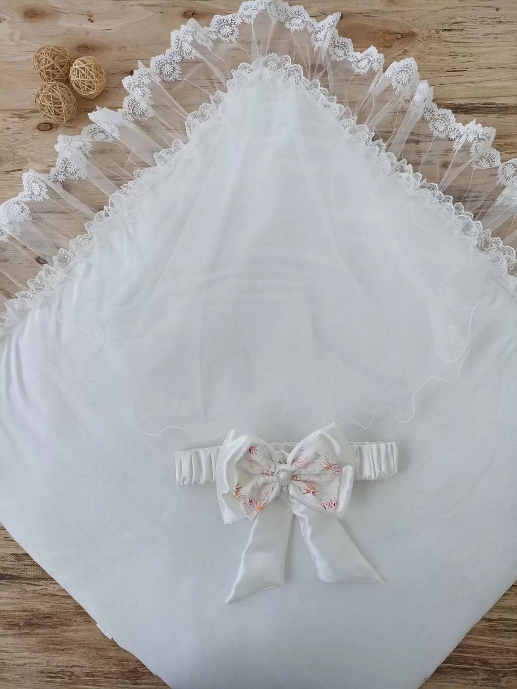 Yenidoğan Hanımeli Desenli Nakışlı Delüks Kundak Bebek Battaniyesi Ekru