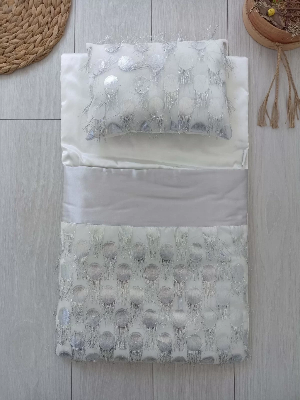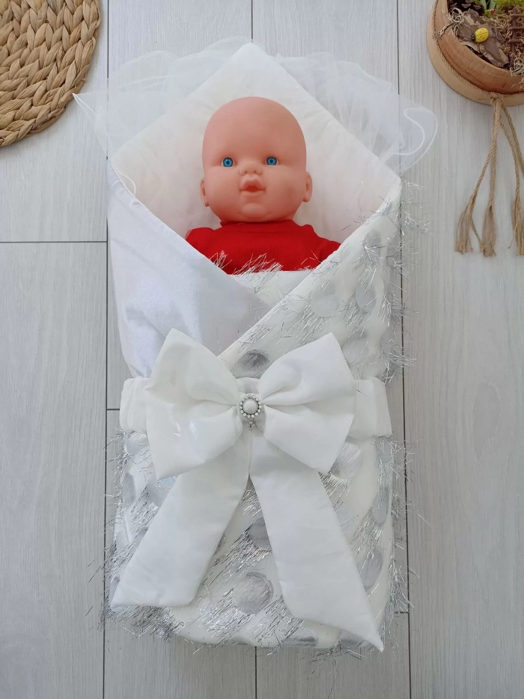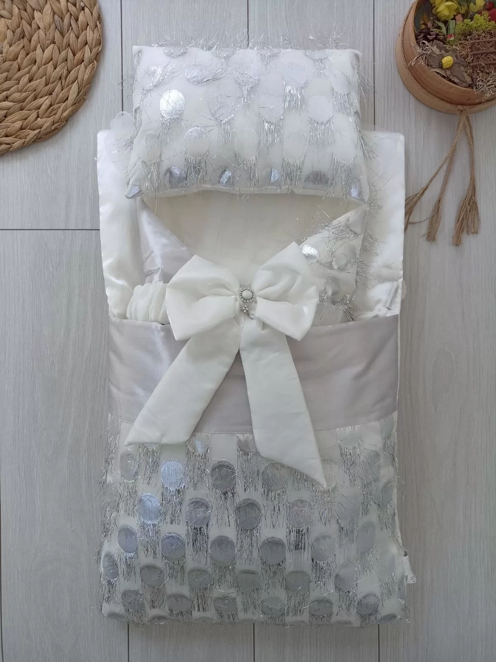 Yenidoğan İzmir İncisi Tül İşlemeli Pamuklu Fiyonklu Kundaklı Lüks 3lü Alt Açma Seti